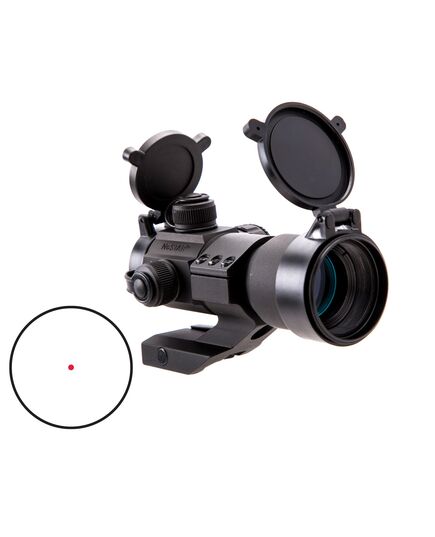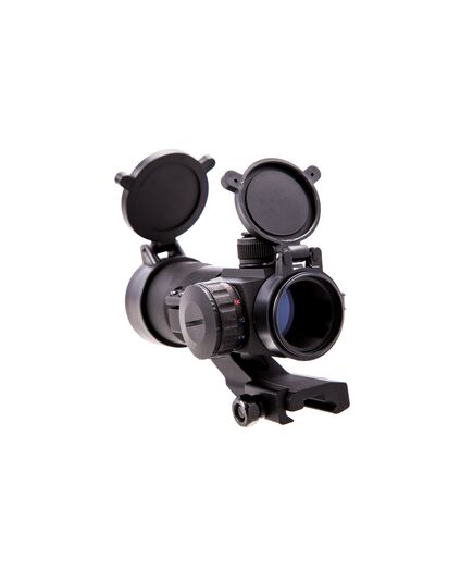 Коллиматорный прицел с сеткой DOT (размер точки 3 МОА) , 3 варианта цвета подсветки: красная, синяя, зеленая, 3 уровня регулировки яркости в комплекте. Устанавливается на стандартную планку вивера.