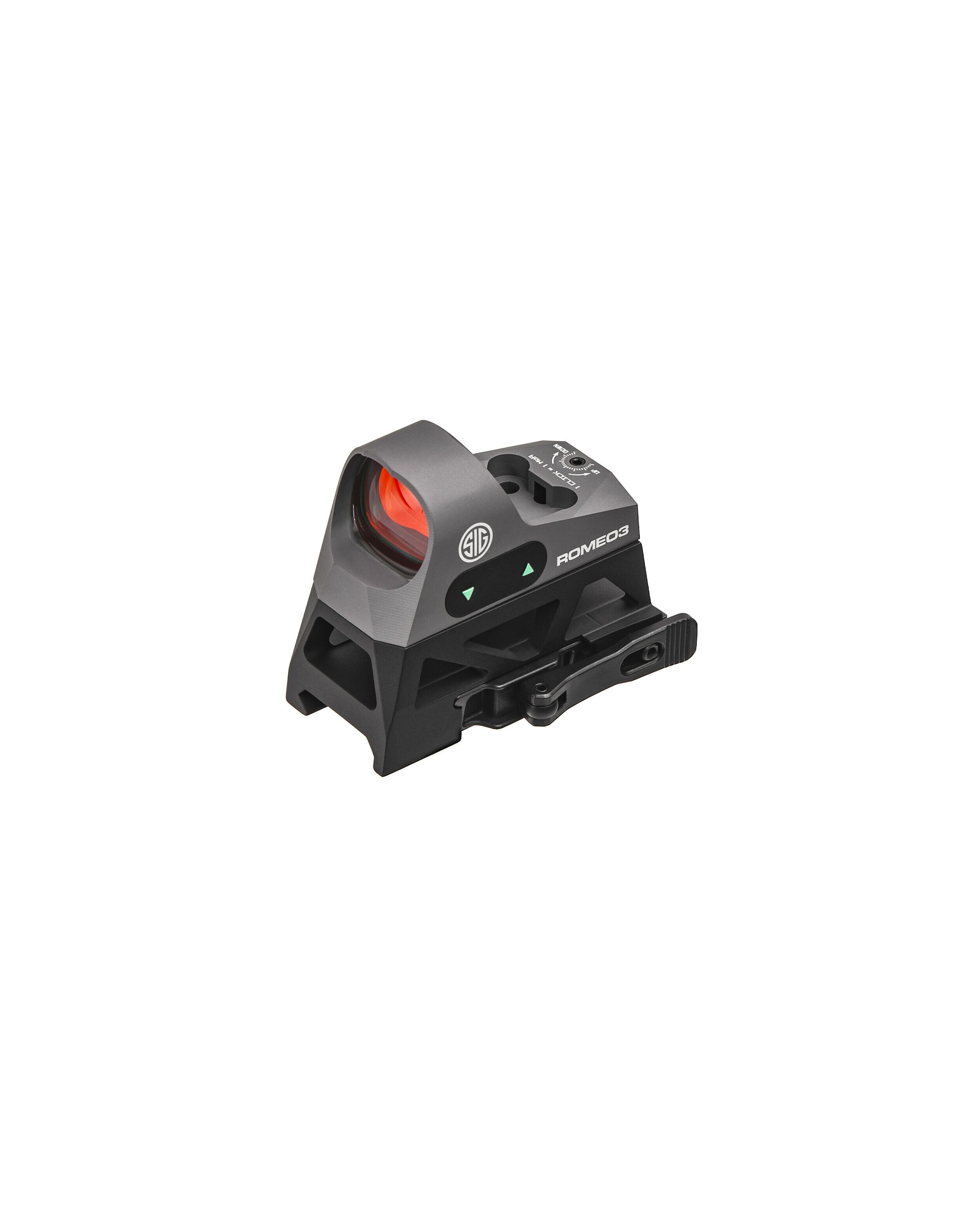 Приціл коліматора ROMEO3 оснащений червоною лінзою з високою светопропускной здатністю, яка забезпечує чудову яскравість і нульове спотворення. Різні настройки інтенсивності червоної точки 3 MOA забезпечують швидке наведення на ціль при самих різних умовах освітлення.