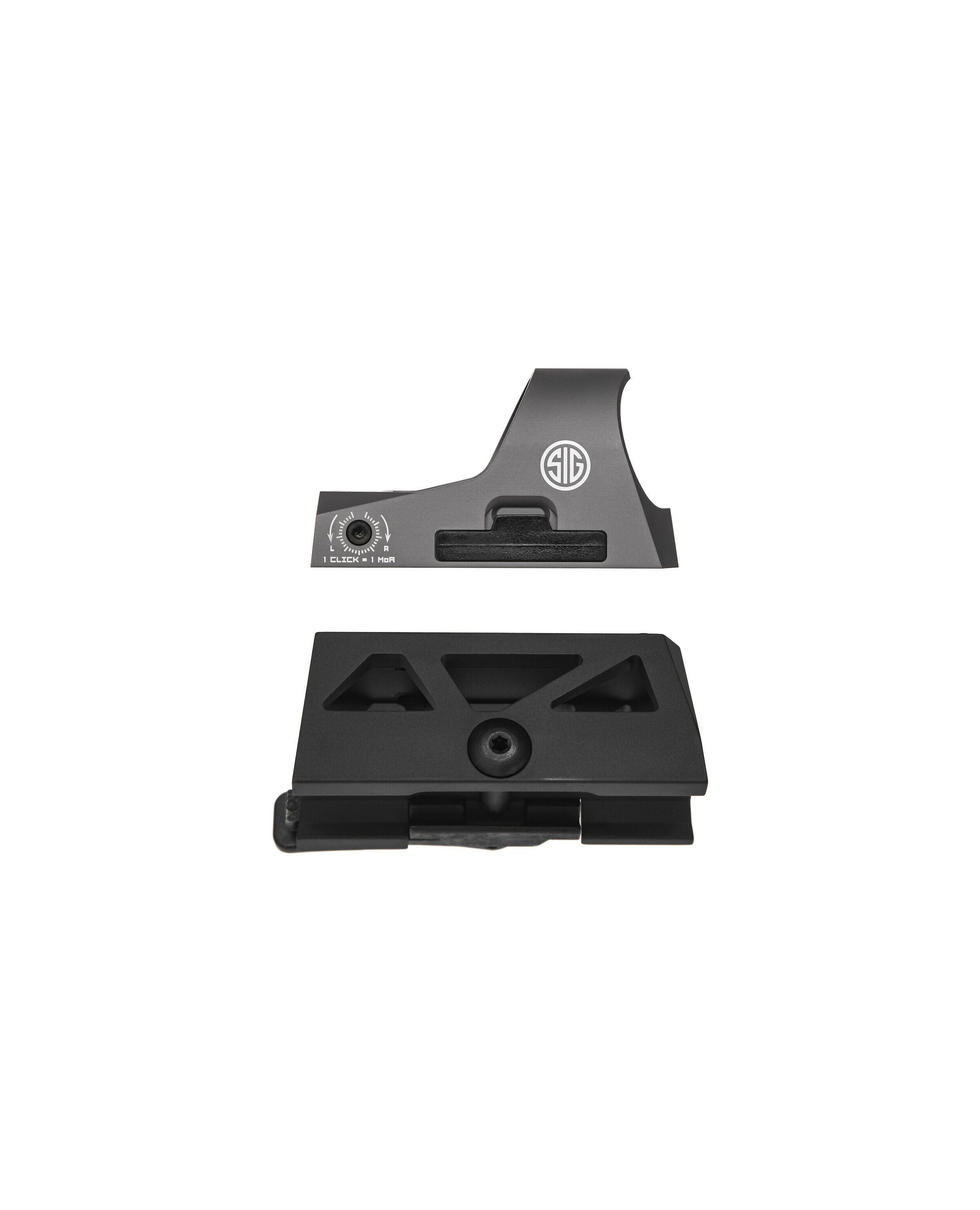 STEALTH ID - спеціально розроблений дизайн краде обриси прицілу і робить його максимально непомітним, особливо добре ефект проявляється якщо використовувати легендарні пістолети виробництва компанії SIG SAUER.