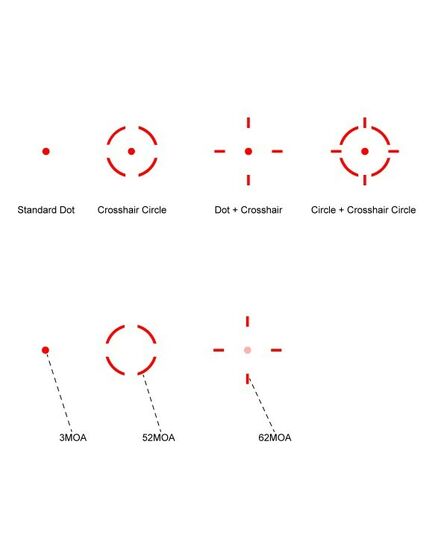 Прицельная сетка: Коллиматорный прицел имеет 4 прицельные сетки по выбору: