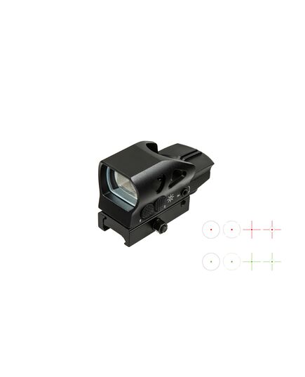 Коллиматорный прицел Vector Optics Z4 характеризуется объективом (оконной линзой) размерами 23 мм х 34 мм, 4-мя видами прицельной сетки в 2-х цветах, красном и зеленом. Подсветка прицельных марок включает в себя 6 режимов яркости. Прицел имеет компактный размер и легкий вес – всего 140 г (вместе с креплением на планку Вивер/Пикатинни). Z4 спроектированный в тактическом стиле, предназначенный для огнестрельного оружия, подойдет для пневматического оружия (необходим отдельно переходник на «ласточкин хвост»). Коллиматорный прицел работает от трёх батарей LR754 (устанавливаются снизу, батареи не входят в комплект), работает в температурах от -20 до +55 °C и имеет водонепроницаемый корпус по стандарту IPX4.