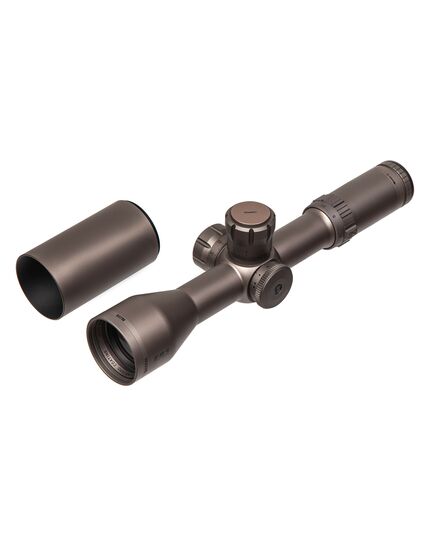 Механізм введення поправок знаходиться під захисними ковпачками, що дозволяє не турбується про випадковий збій налаштувань. Ковпачки так само зручно знімати в рукавицях. Крок поділу на барабанах 1/4 MOA. Прицільна сітка Multi-X розташована в другій фокальній площині, не перекриває мета навіть на максимальному збільшенні, оптимальна в умовах низької освітленості і при стрільбі на темному тлі.