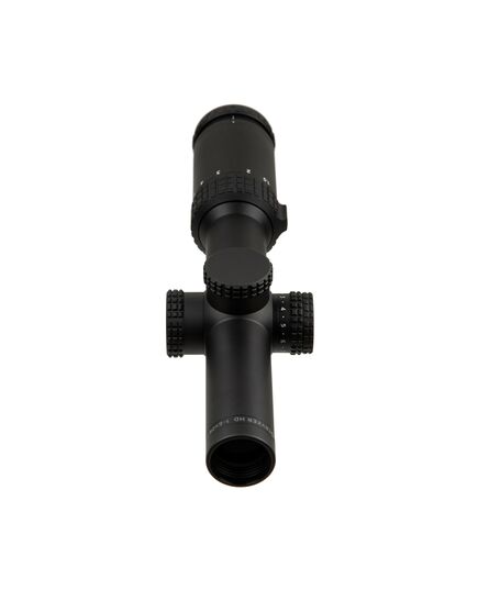 Закрытые низкопрофильные барабаны поправок предотвращают случайное изменение настроек прицела. Установка нуля после пристрелки не требует дополнительных инструментов - как только сетка будет правильно установлена, просто поднимите барабан и установите его в нулевое положение и нажмите назад. Светящаяся точка в центре креста обеспечивает быстрое обнаружение цели на коротких дистанциях. Чтобы облегчить быструю смену увеличения, прицел оснащен специальным завинчивающимся регулировочным рычагом.