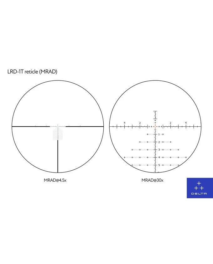 LRD-1T - прицельная марка, которая была разработана специально для максимально быстрого и эффективного измерения дистанций, точных поправок на ветер и учёта движущихся целей. В тоже время, на минимальнйо кратности данная сетка позволяет производить делать быстрый вынос по сетке. Всё это идеально подходит для PRS направления в снайпинге.