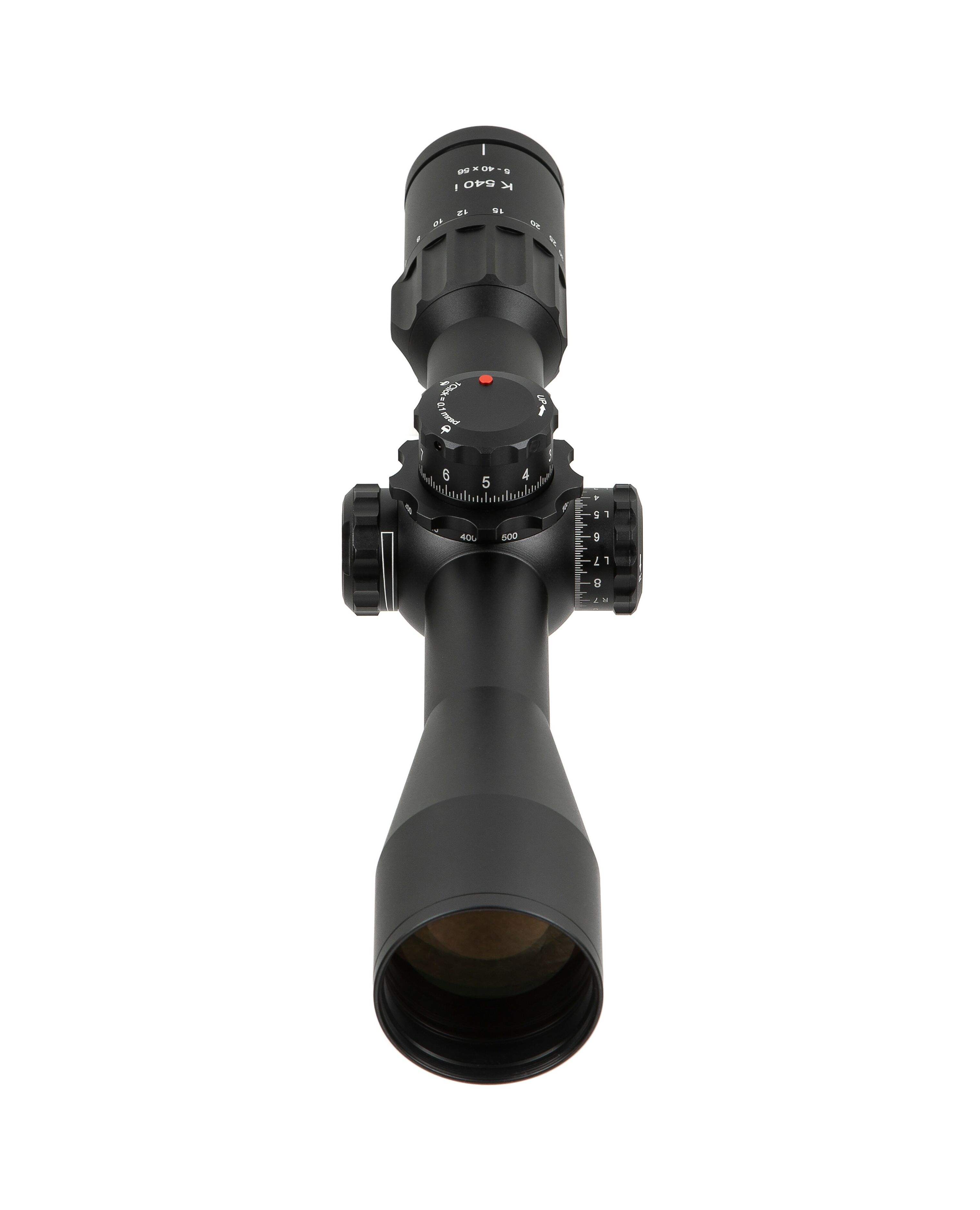 -- DLR – барабанчик вертикальных поправок, адаптированный для динамической высокоточной стрельбы на дальние дистанции. Для большего удобства при динамической стрельбе в DLR моделях увеличенные цифры на барабанчике поправок и оборот вертикальных поправок имеет 100 кликов на оборот (вместо 160 кликов за оборот в обычных моделях К540i).