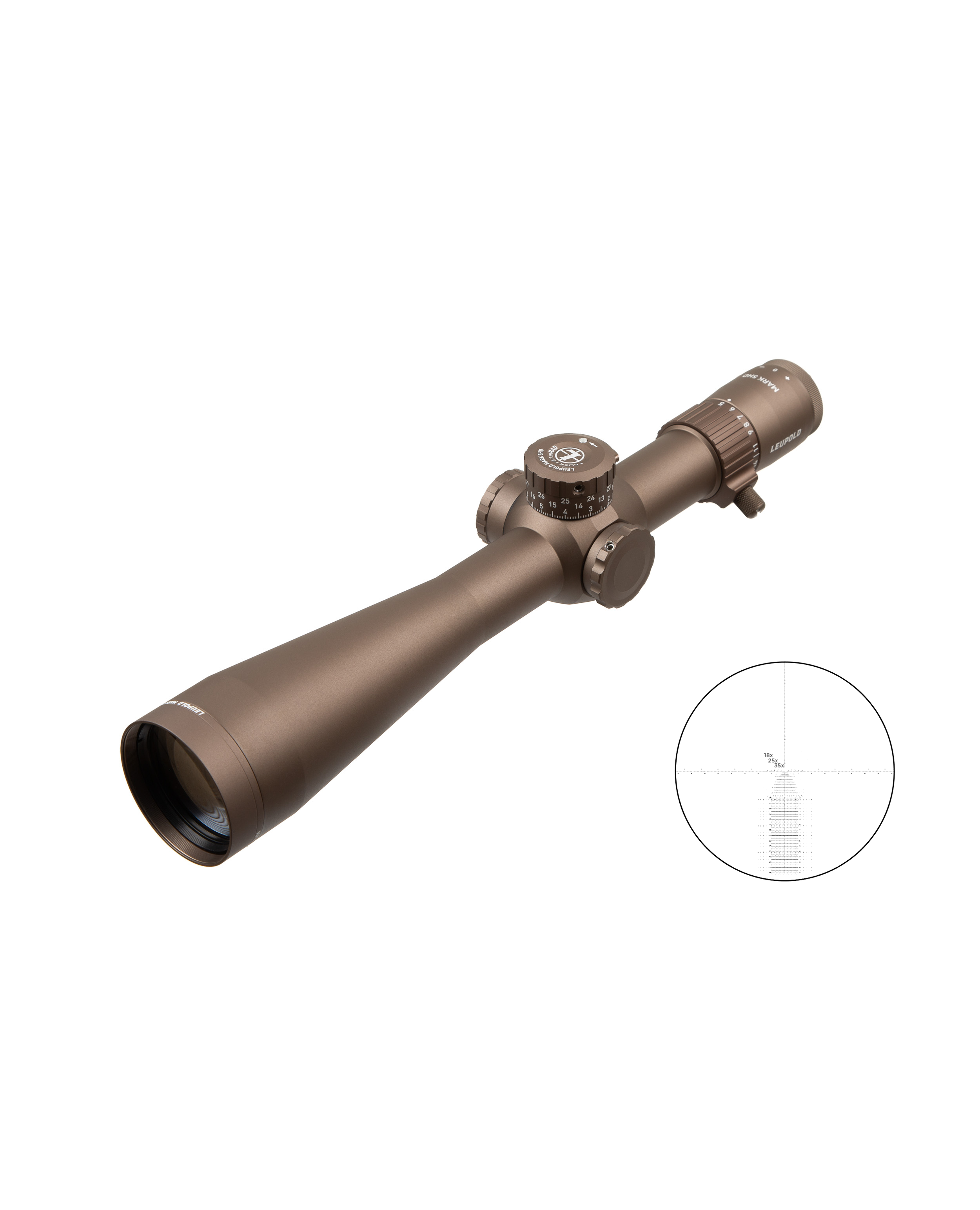 Mark 5HD на 100% водонепроницаемый, защищенный от запотевания, выдерживает экстремальные температуры, перепады высот и ушибы. Как и все оптические прицелы Leupold®, Mark 5HD разработан, изготовлен и собран в США.