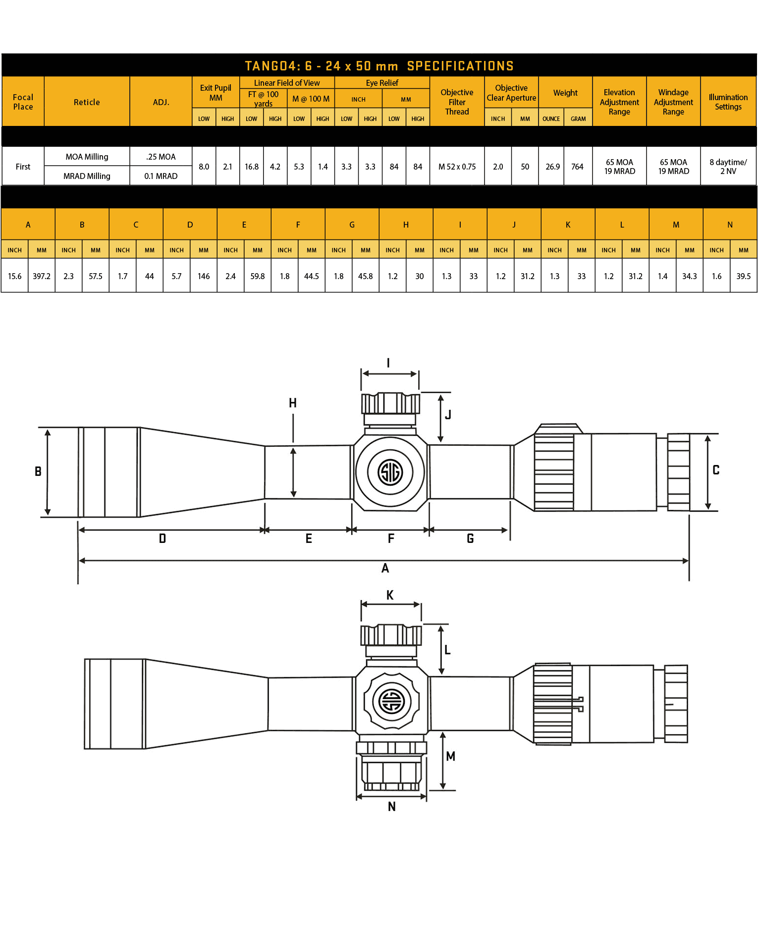 Приціл оптичний Sig Optics TANGO4 6-24x50mm, 30mm, FFP, MRAD ILLUM RETICLE, SIDE FOCUS
