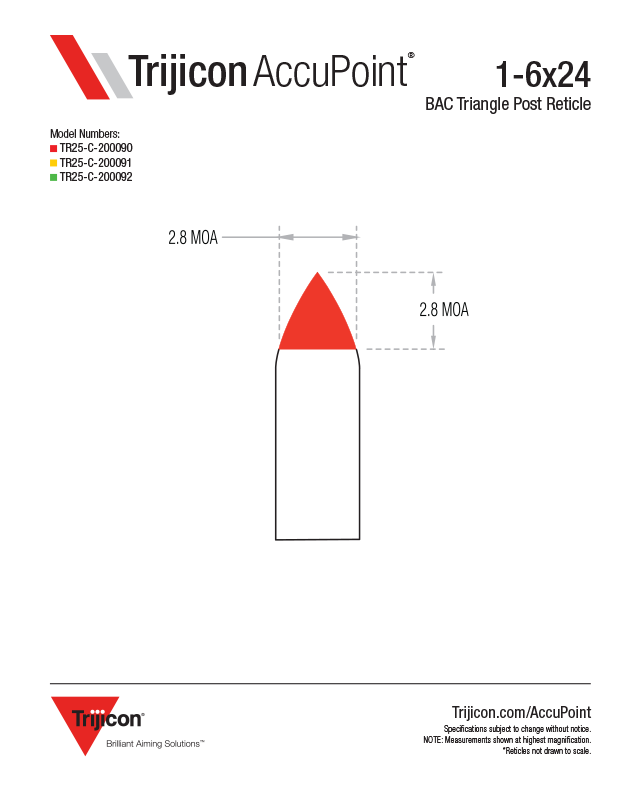 Trijicon AccuPoint 1-6x24 будет прицелом, который даст вам небольшое дополнительное увеличение, когда оно вам понадобится. После использования карабина весь день на 1x вы достигаете той стадии, когда вам нужно остановиться, подышать и сделать дальний выстрел. Когда вы это сделаете, вы будете рады, что сможете увеличить его до 6 раз. Будь то густой лес слева от вас или кукурузное поле справа от вас, у вас будет уверенность, чтобы выстрелить. Наша запатентованная сетка на оптоволоконной основе - одна из самых быстрых, которые вы когда-либо использовали. Используйте функцию Bindon Aiming Concept ™ (BAC) Trijicon с открытыми глазами, совместите кончик яркого оптоволоконного треугольника с целью, нажмите на спусковой крючок, и ваша работа будет выполнена. Управляйте яркостью своей оптоволоконной точки прицеливания с помощью инновационного шкалы подсветки и будьте уверены в правильности выстрела при слабом освещении, когда работает тритий.