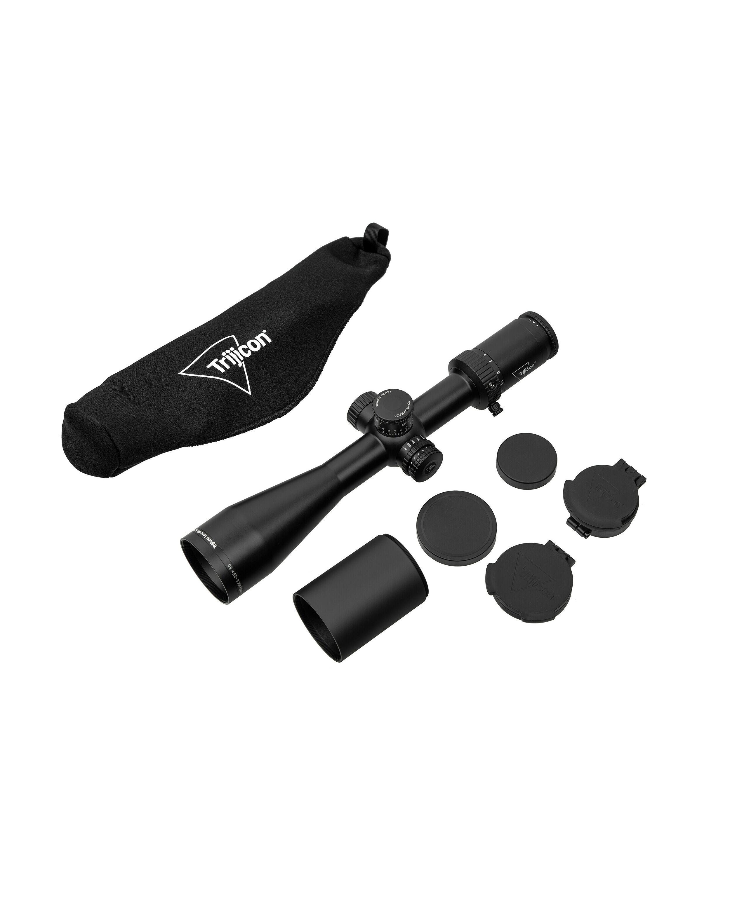В комплект прицела входят: противосолнечная бленда на объектив, откидная крышка объектива, откидная крышка окуляра, чехол для прицела, карандаш для чистки оптики, шестигранный ключ 3 мм, шестигранный ключ 1,5 мм, съёмный рычаг регулирования кратности, 1 батарея CR2032, руководство пользователя, виниловая наклейка с логотипом Trijicon.