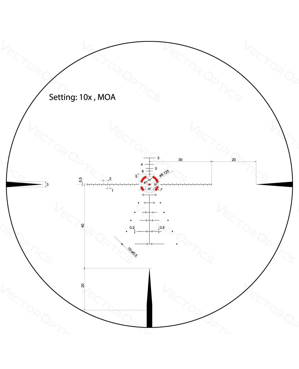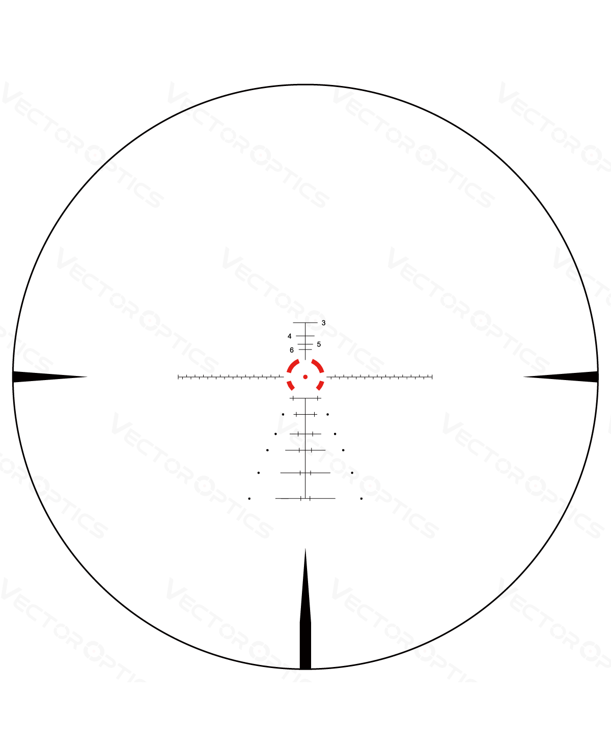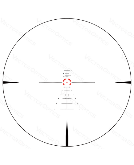 -- Прицельная сетка: VOS-TMOA – удобная с подковой вокруг точки для удержания цели, с функцией измерения расстояния и ветровыми метками для стрельбы выносом.