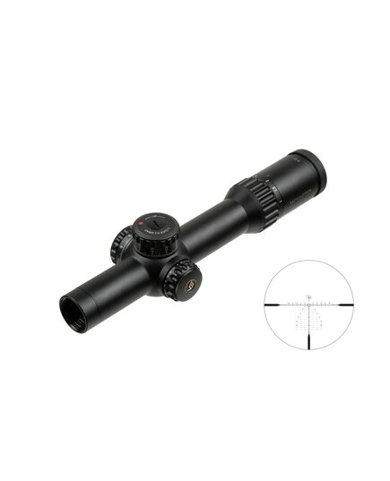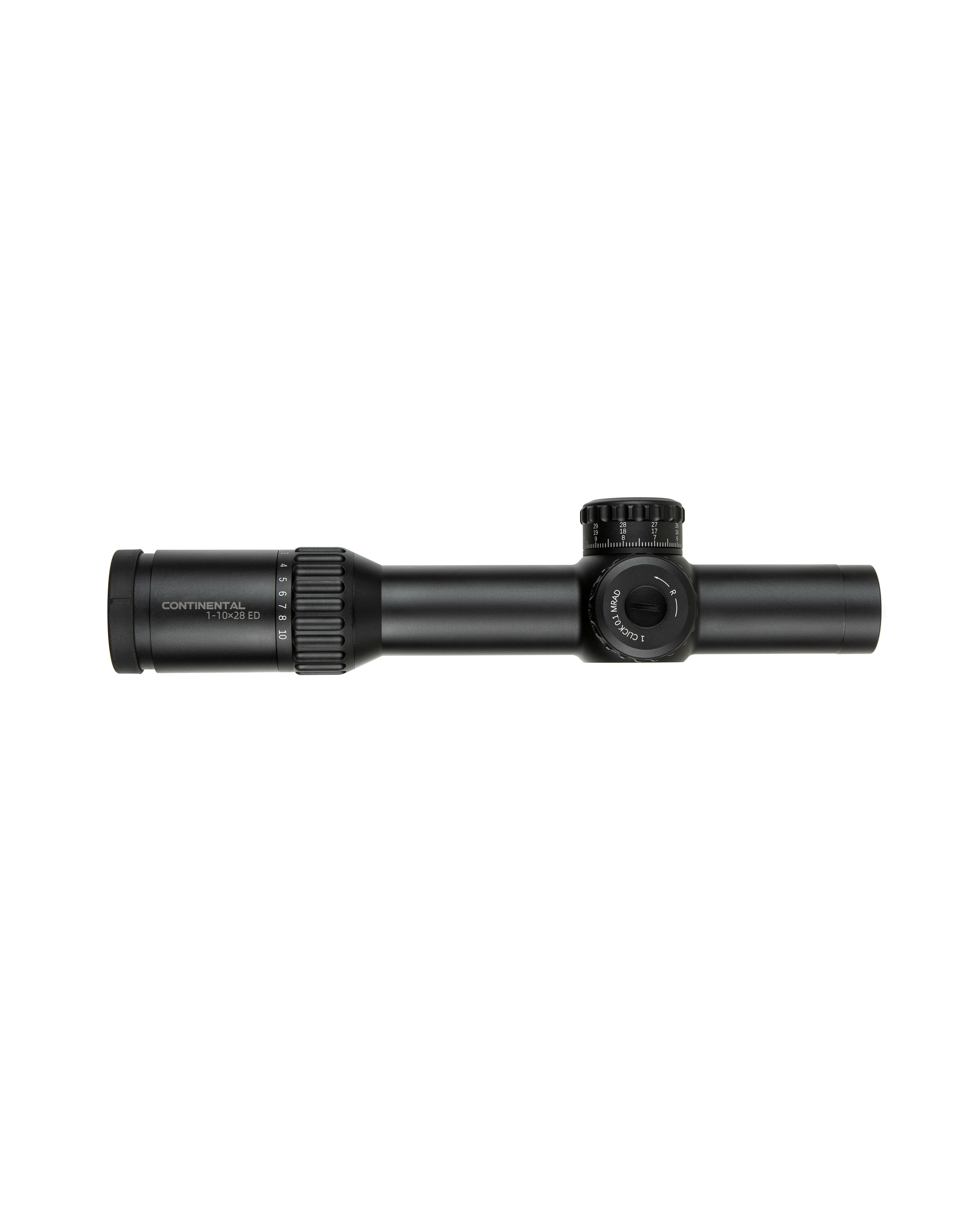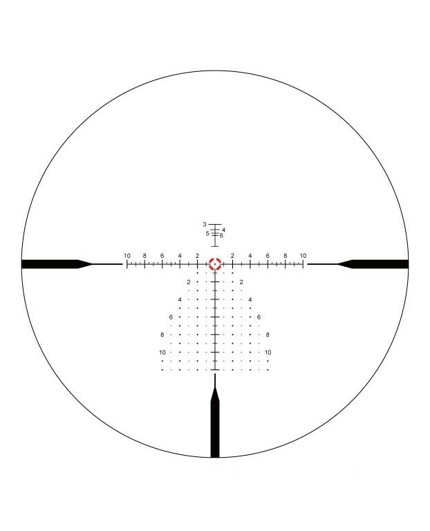Прицельная сетка Continental 1-10x28 имеет гравированную прицельную сетку типа VET-CTR BDC, расположенную в первой фокальной плоскости (FFP), поэтому размер сетки изменяется с увеличением. Это позволяет производить замеры дистанции с помощью сетки на любой кратности.