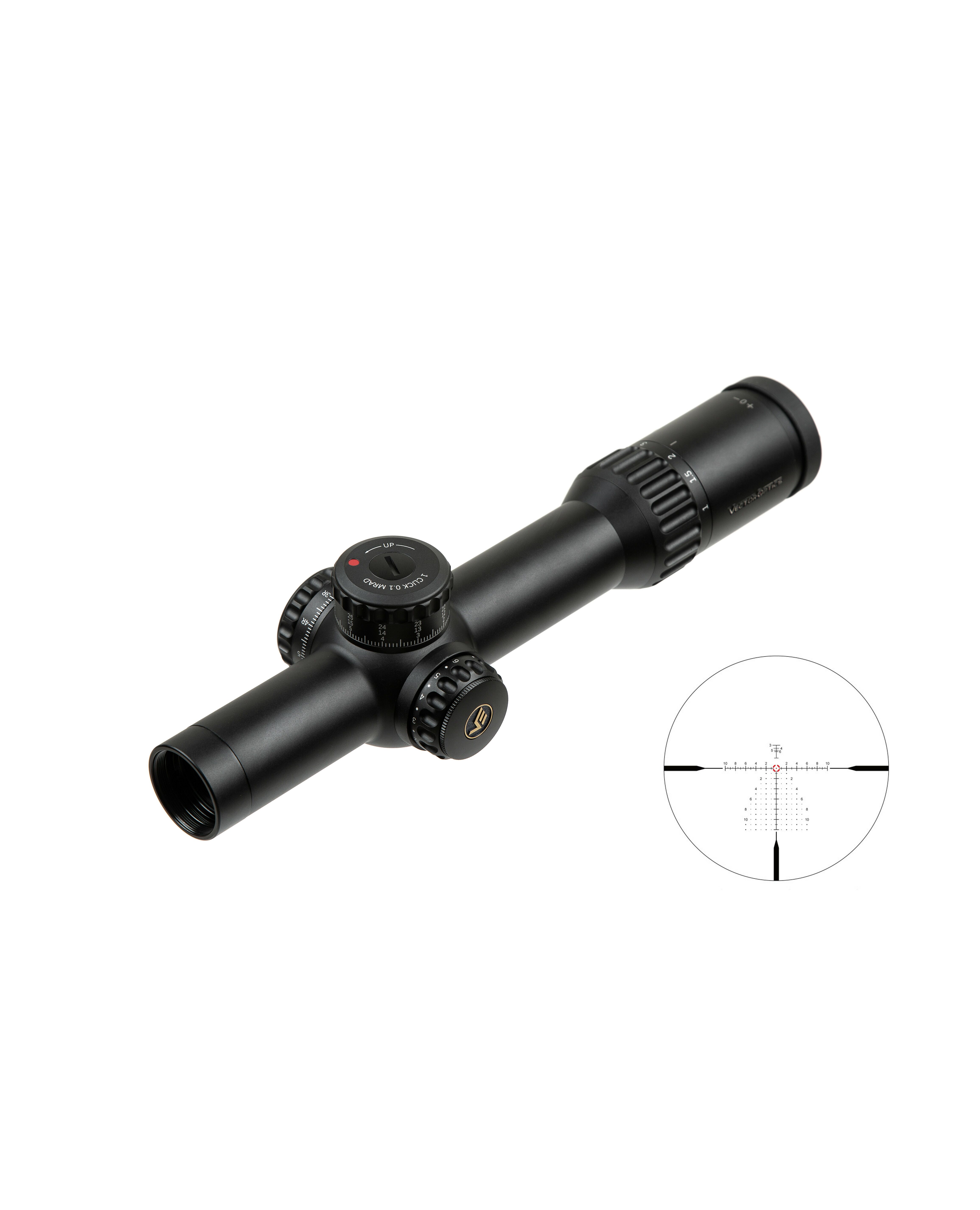 Регулировка: Тактические барабанчики для точной настройки по вертикали и горизонтали с четкими кликами (цена клика 1/10 MRAD), которые позволяют быстро и точно вносить поправки. Барабанчики поправок оснащены функциями Zero Lock и Zero Stop для предотвращения случайного внесения поправок и быстрого возврата к нулю.