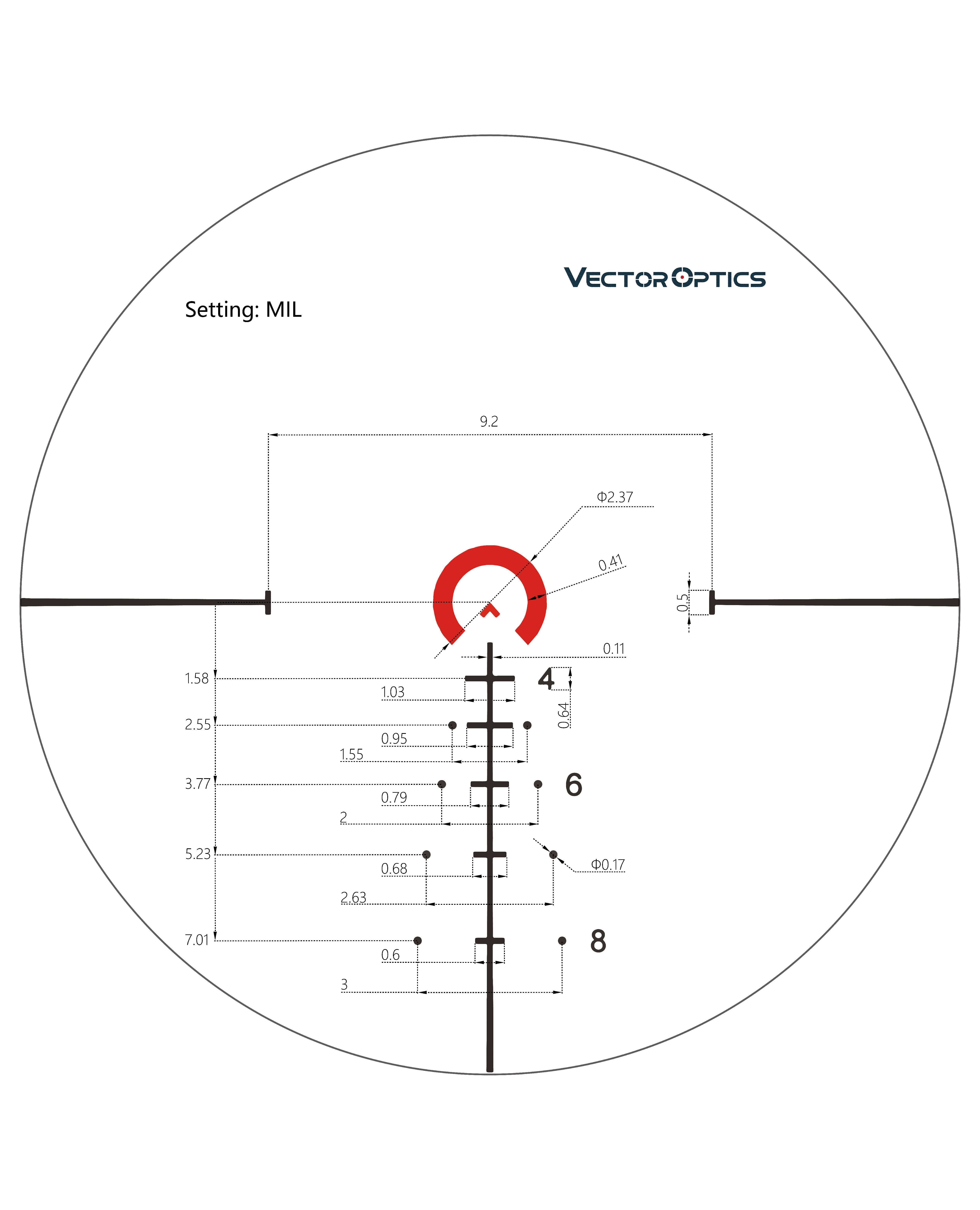 Сетка BDC с баллистическими метками выгравирована  на стекле, она позволяет вести огонь от самых близких дистанций до максимальных для данного калибра