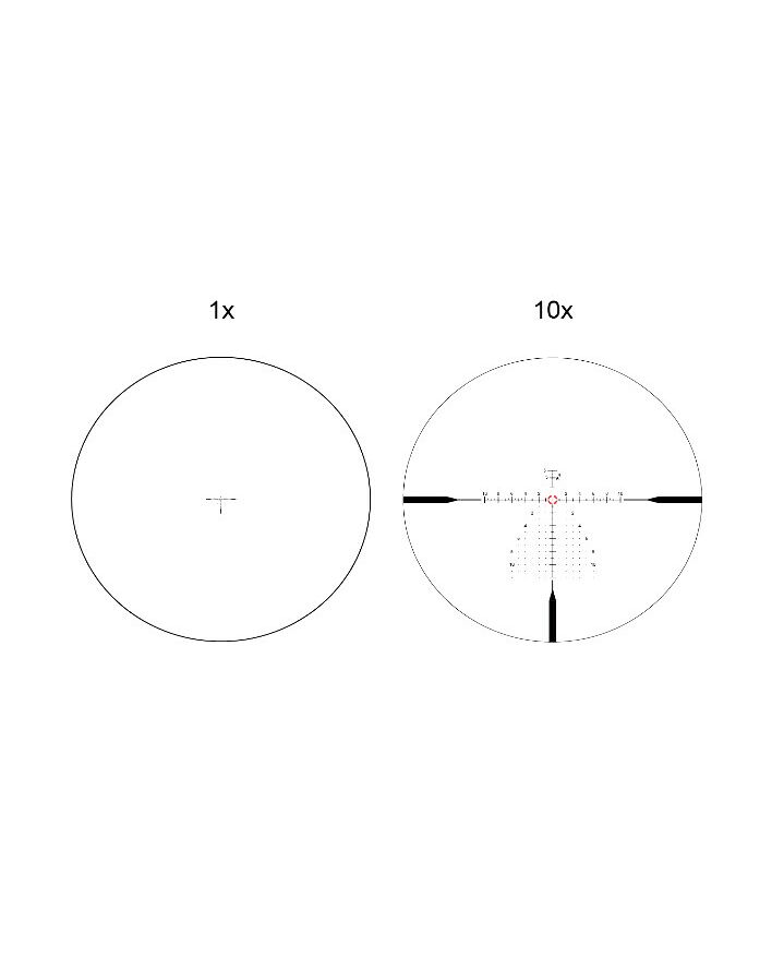 Прицельная сетка: Continental 1-10x28 имеет гравированную прицельную сетку типа VET-CTR, расположенную в первой фокальной плоскости (FFP), поэтому размер сетки меняется с увеличением.