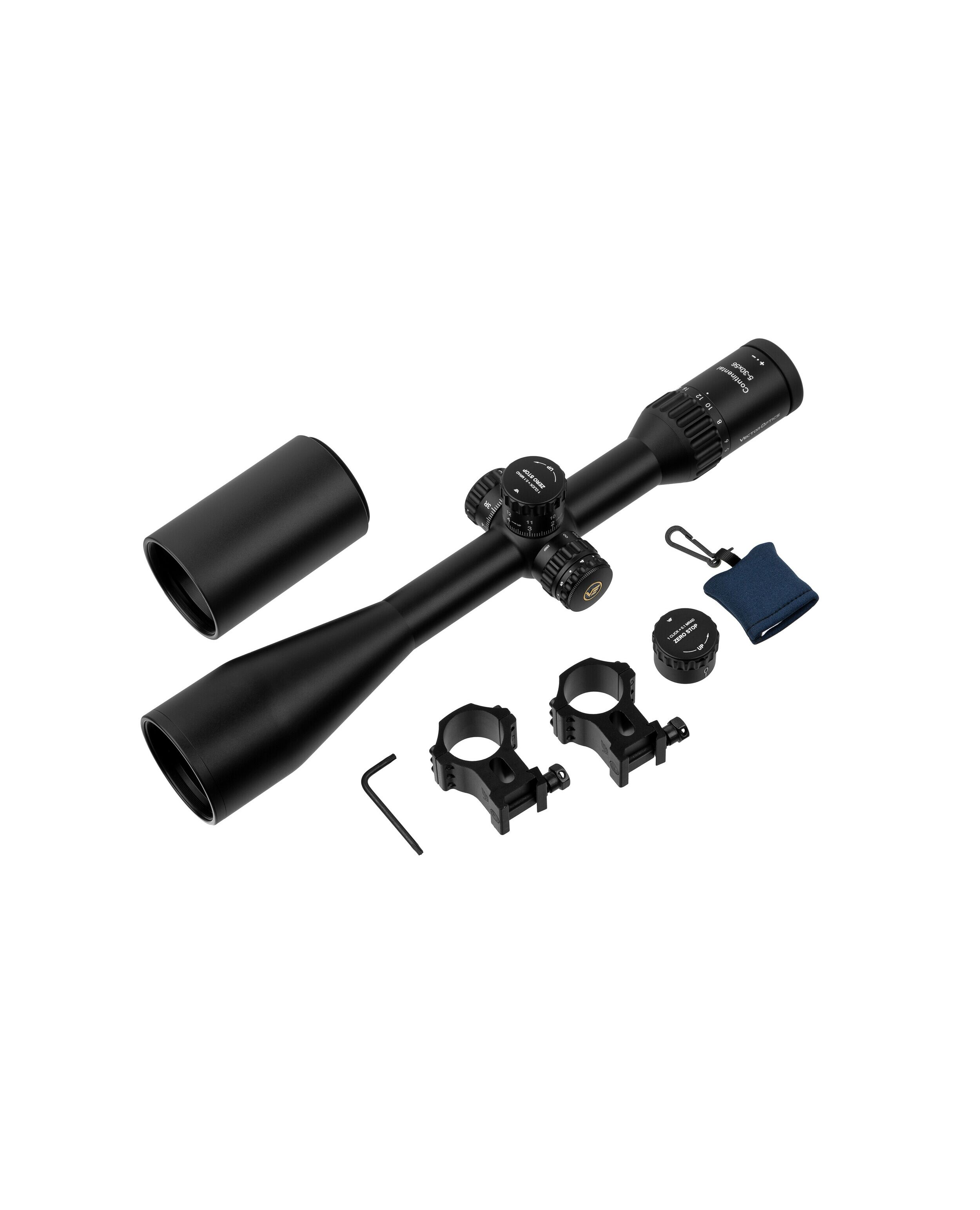 В комплект прицела входит одна пара 30-мм колец для прицела Пикатинни, противосолнечная бленда, запасной барабанчик поправок, крышки объектива и окуляра, салфетка для обслуживания.