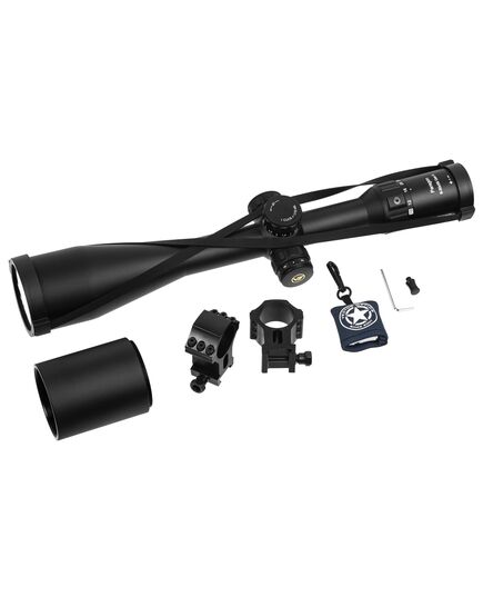 В комплект к прицелу входят: одна пара 30-мм колец для прицела на планку Пикатинни, солнцезащитный козырек длиной 76 мм, крышки объектива и окуляра, микрофибра для обслуживания.