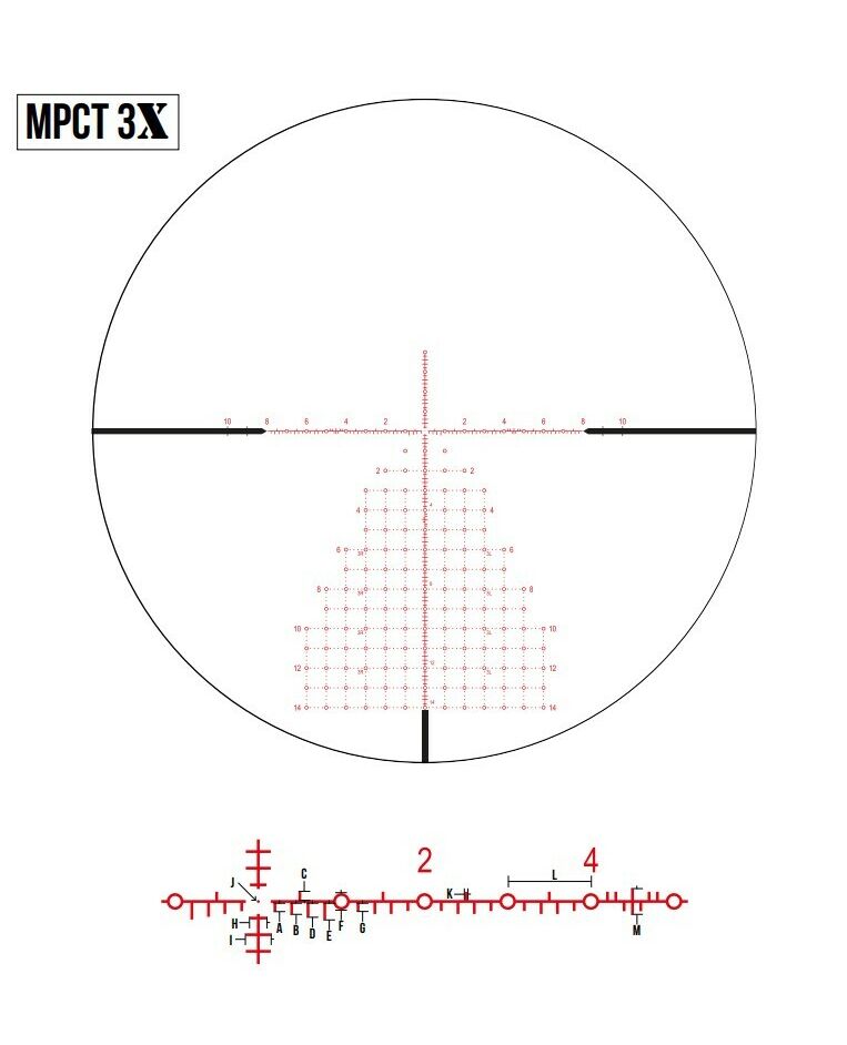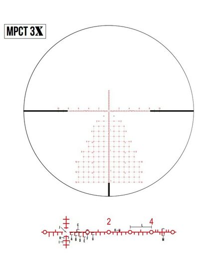 Сетка MPCT3X в первой фокальной плоскости масштабируется пропорционально увеличению кратности. При смещении попадания пули от желаемого места сетка прицела дает возможность быстрой корректировки поправок. CCW означает, что направление вращения барабанов – против часовой стрелки. Сетка имеет подсветку красного цвета, которая работает от одной батареи CR2032.