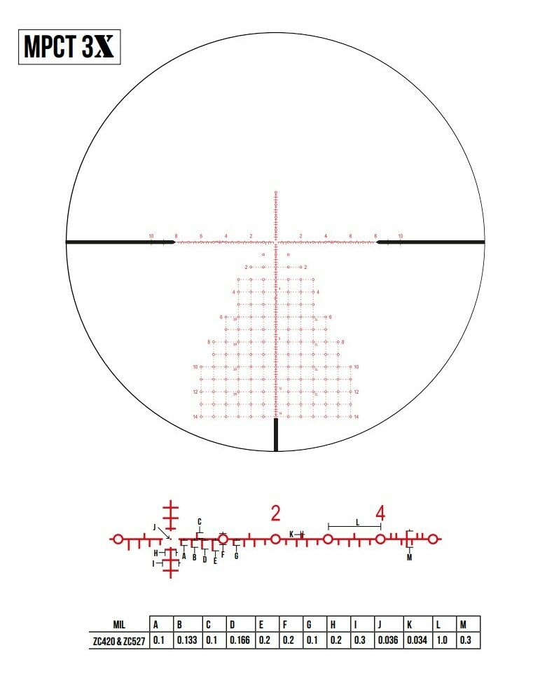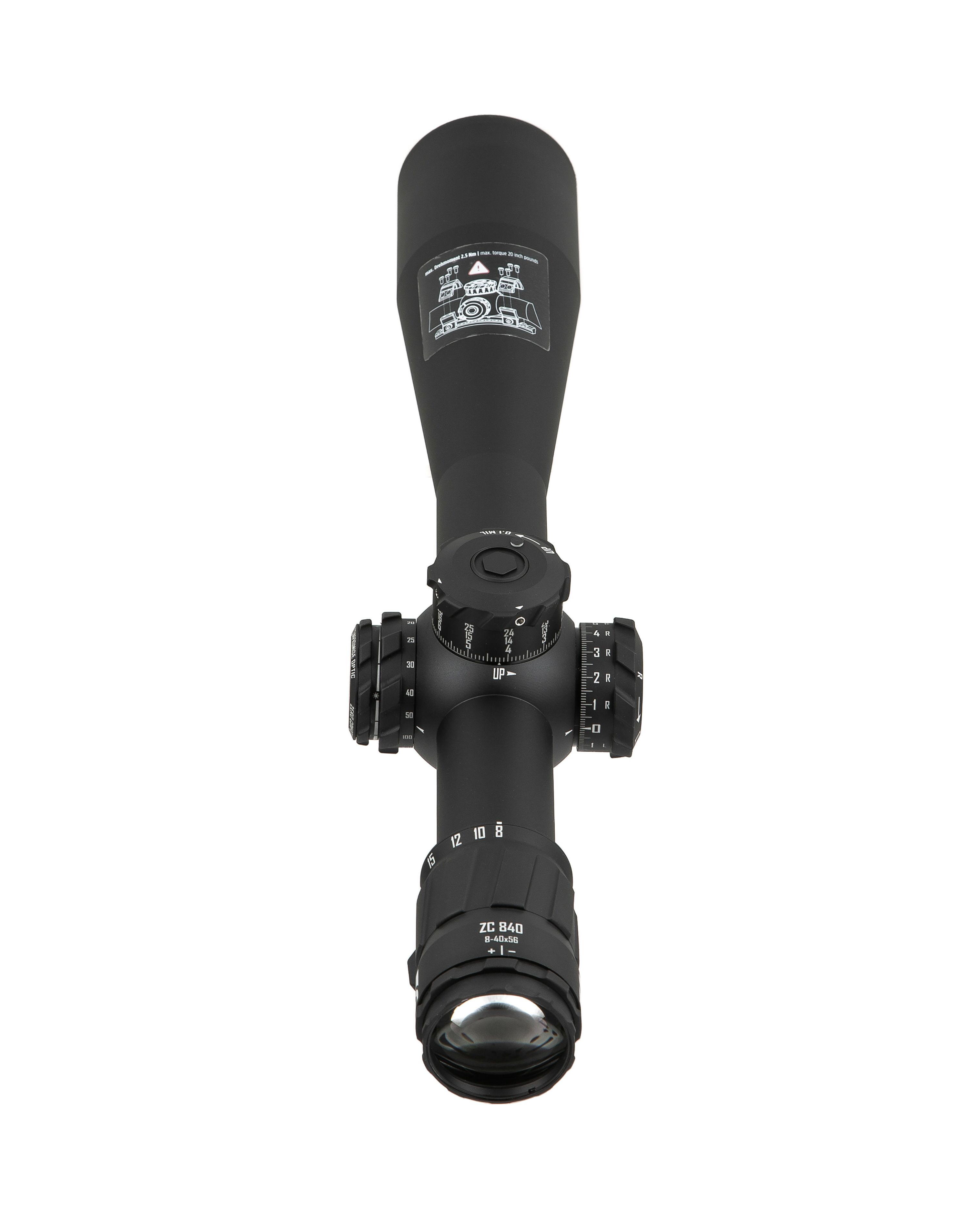 ZC 8-40x56 – оптический прицел, разработанный австрийской компанией Zero Compromise Optic для высокоточной стрельбы. Прицел характеризуется широким диапазоном кратности (увеличение от 8х до 40х). Этот диапазон кратности позволяет использовать прицел как на небольших и средних дистанциях, так и больших дистанциях. Линзы высокого качества обладают многослойным покрытием и обеспечивают улучшенные оптические характеристики передачи контрастности цветов и разрешения изображения. Увеличенный диаметр центральной трубы 36 мм обеспечивает максимальный диапазон вертикальных поправок – 28 MIL. Оптический прицел характеризуется широким полем зрения: на кратности 8х поле зрения составляет 4,6 м на дистанции 100 м, на кратности 40х – 1,0 м на дистанции 100 м. Большой диаметр объектива 56 мм и светопропускная способность оптической системы прицела 92% обеспечивают четкое и яркое изображение даже при слабом освещении и в сумерках. Прицел оснащен тактическими барабанами поправок, обладающими функцией блокировки от непреднамеренных прокруток. Клики барабанов четкие, хорошо слышимые и повторяющиеся. Цена клика барабанов составляет 0.1 MIL как по вертикали, так и по горизонтали. Каждый клик регулировки изменяет точку попадания на 0.1 MIL (1 см на 100 м), что удобно для точной корректиковки стрельбы. Максимальный диапазон поправок: 28 MIL по вертикали и 16 MIL по горизонтали. Это позволяет корректировать положение прицельной марки в широком диапазоне, что особенно важно при стрельбе на большие расстояния или при переменном ветре и других факторах. Боковая регулировка параллакса корректирует параллакс на дистанции от 10 м до бесконечности. Такое размещение регулировки параллакса дает удобство использования прицела в разных условиях и позволяет минимизировать ошибки из-за параллакса при изменении точки обзора. Корпус оптического прицела изготовлен из сверхпрочного авиационного алюминия, что обеспечивает его надежность и долговечность. ZC840 имеет защиту от воды и пыли, что позволяет использовать прицел даже в дождь, а заполнение инертным газом помогает предотвратить запотевание внутренних поверхностей линз при сильных перепадах температуры и влажности. Эти параметры делают прицел надежным инструментом для работы в разных условиях и обеспечивают его длительный срок службы. Сетка MPCT3X в первой фокальной плоскости масштабируется пропорционально увеличению кратности. При смещении попадания пули от желаемого места сетка прицела дает возможность быстрой корректировки поправок. CCW означает, что направление вращения барабанов – против часовой стрелки. Сетка имеет сменную подсветку красного и зелёного цвета, которая работает от одной батареи CR2032. Прицел имеет включаему функцию автоотключения подсветки при наклоне прицела по вертикальной оси на 70 градусов от горизонтального положения. Переключатели цвета сетки и режима автоотключения находятся внутри батарейного отсека. Комплект прицела включает в себя чехол, защитные колпачки объектива и окуляра, шестигранный ключ и батарею CR2032.