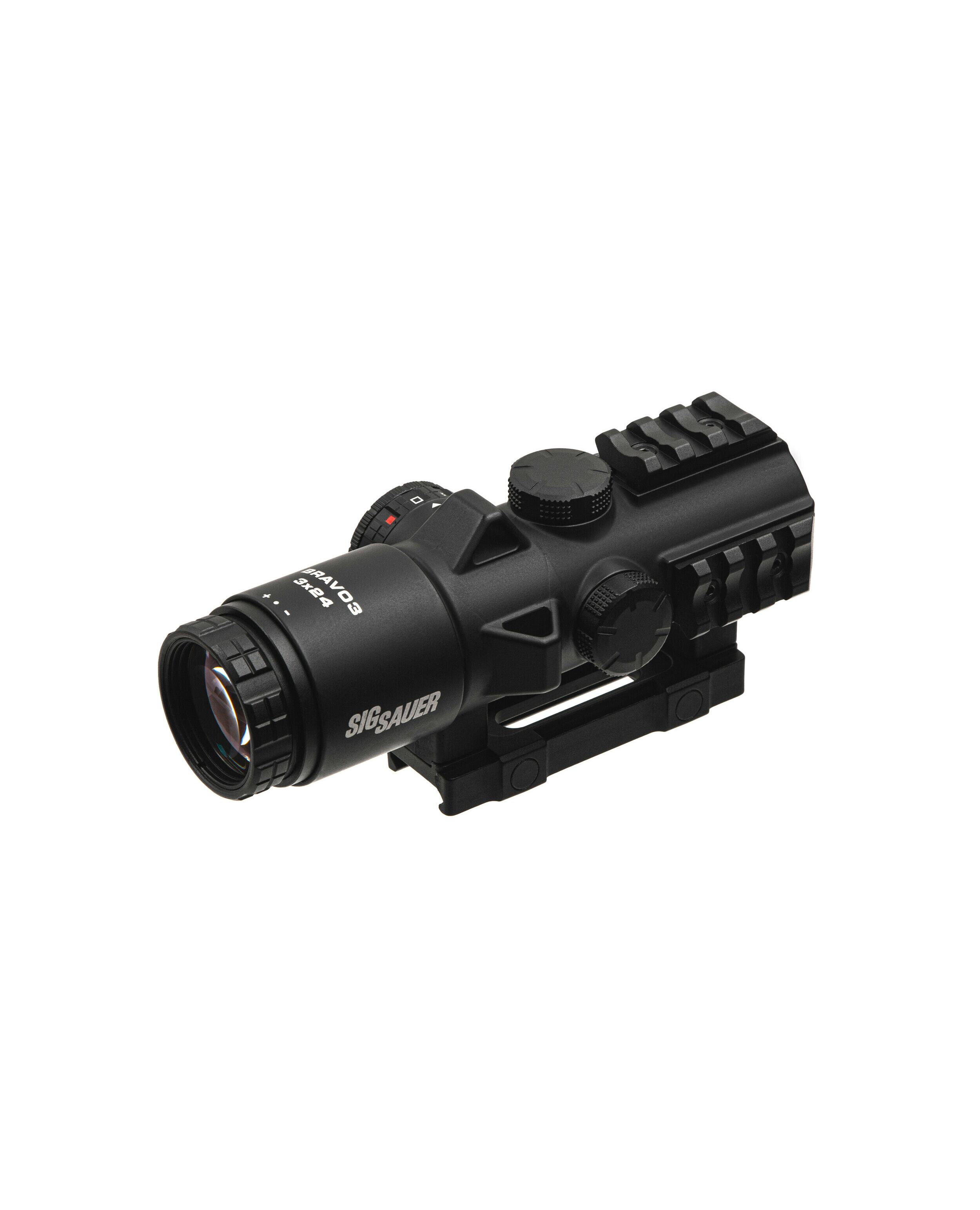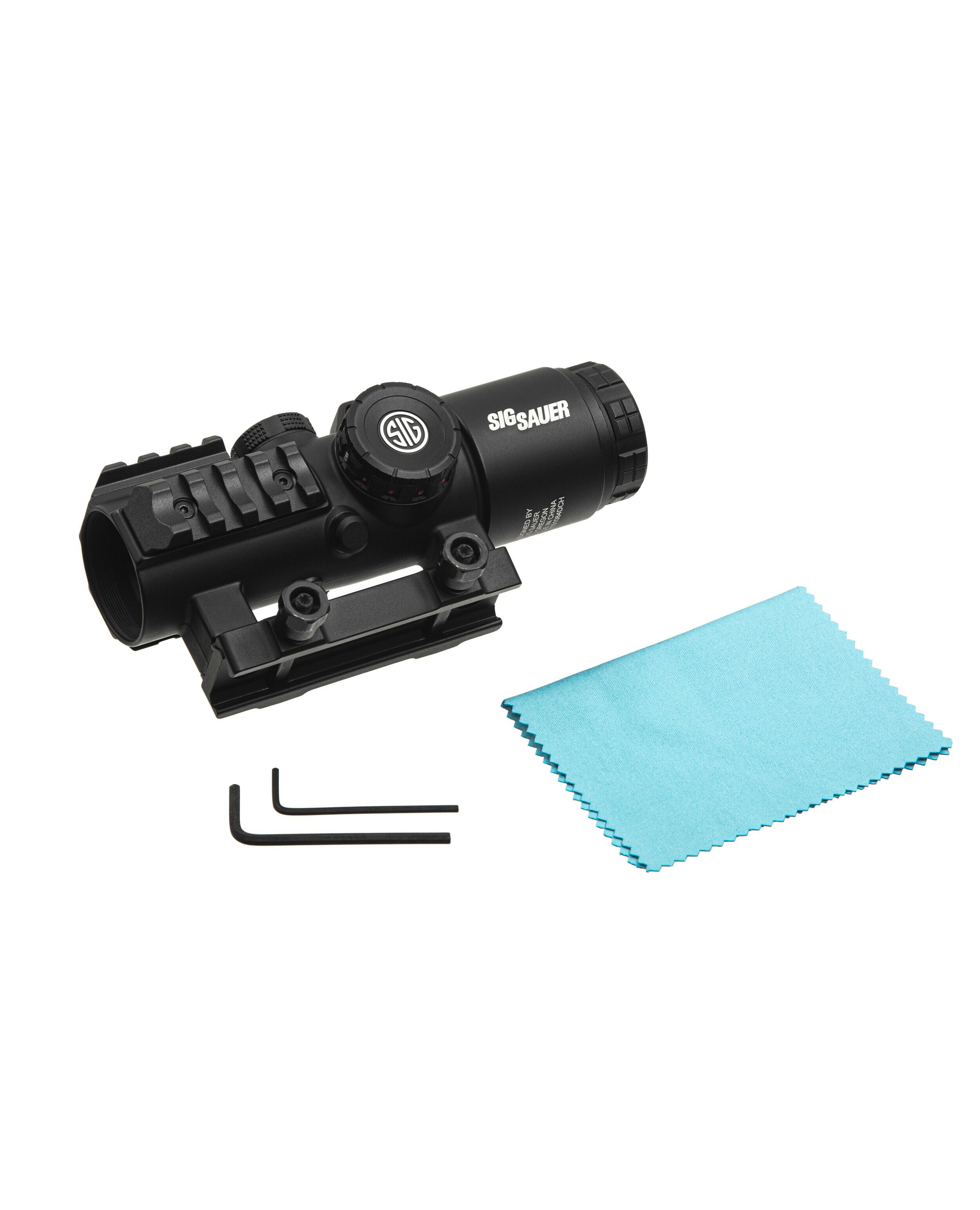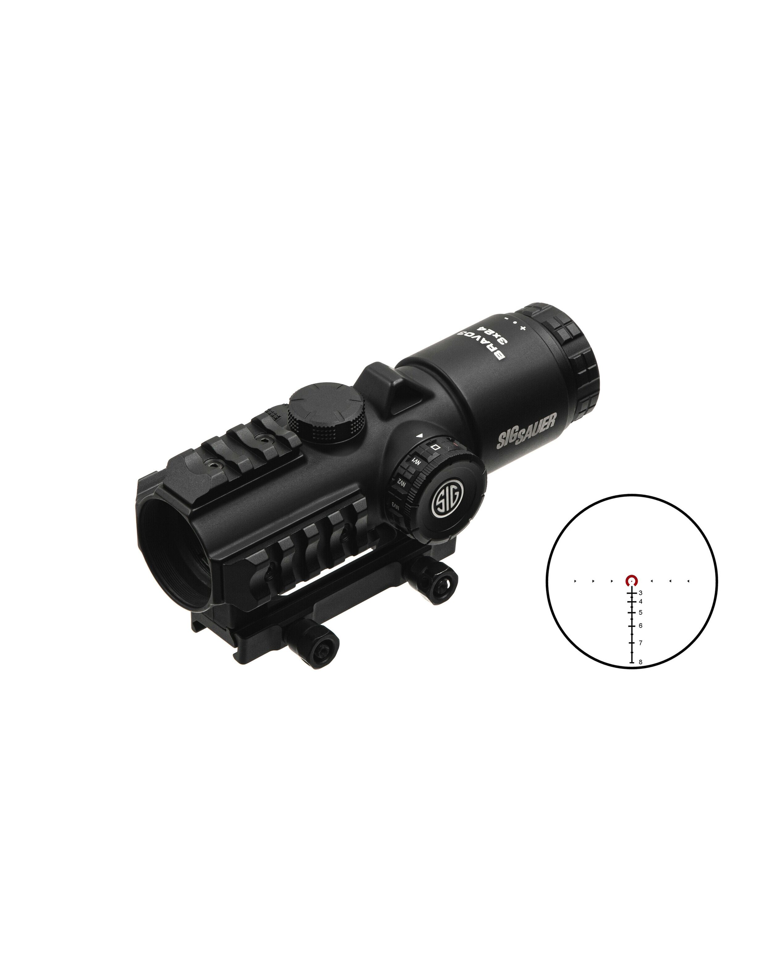 SIG Sauer BRAVO3 имеет радикально новый дизайн для профессиональных и гражданских AR-стрелков. Прицел обеспечивает лучшее в отрасли поле зрения, которое на 43% шире, чем у текущих боевых прицелов. Невероятно плоское изображение без искажений может похвастаться беспрецедентной четкостью благодаря сочетанию стекла с низкой дисперсией (LD) и конструкции асферических линз. Легкий и в то же время крепкий магниевый корпус имеет встроенные планки Пикатинни с 3-х сторон для дополнительных аксессуаров, таких как фонари и лазеры. BRAVO3 разработан с высотой 39 мм от верхней части планки Пикатинни M1913 до центральной оси объектива для совместимости с прибором ночного видения.