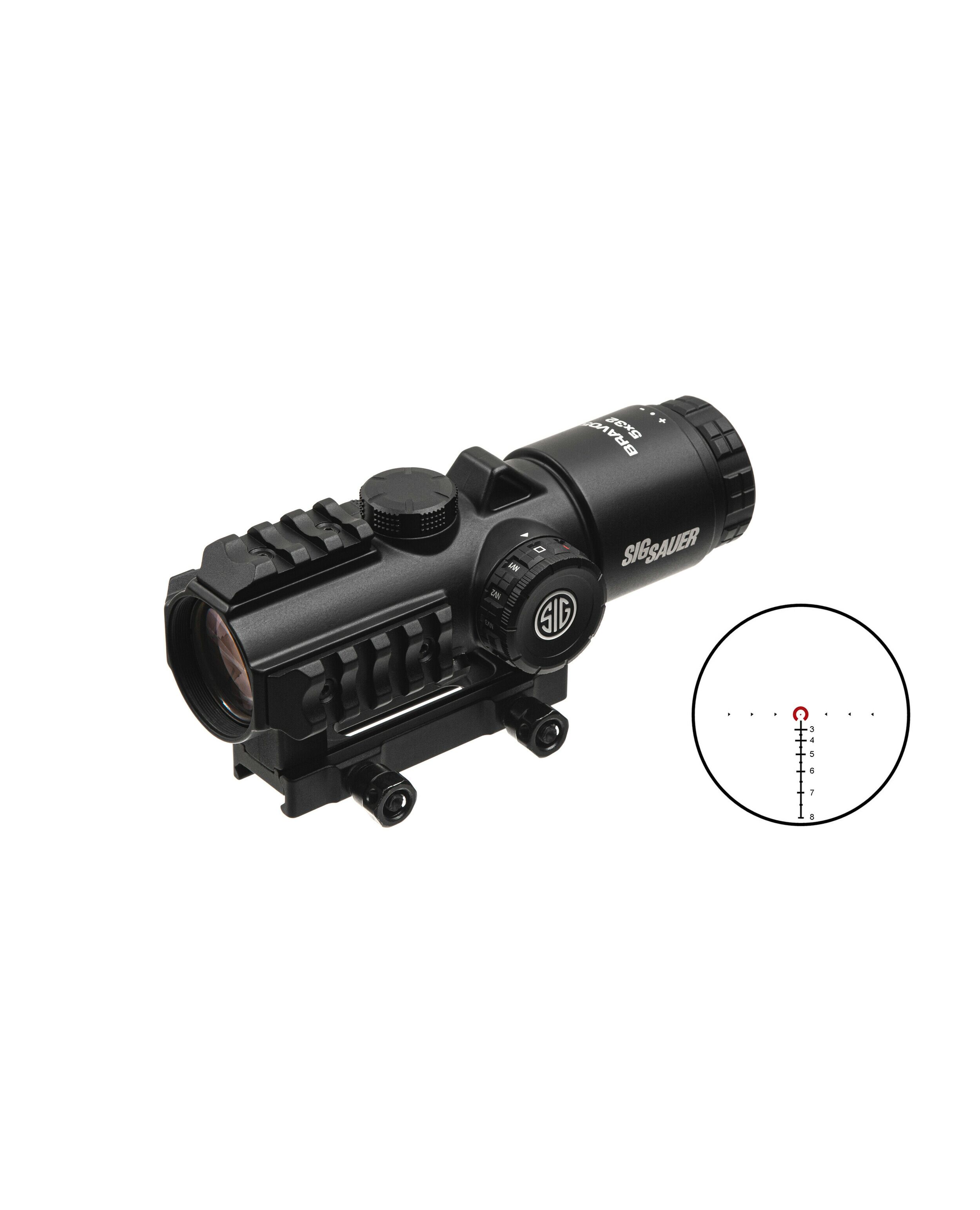 Оптический прицел Sig Sauer Bravo - первый в мире боевой прицел с широким поле зрения. Радикально новый дизайн для профессиональных и гражданских стрелков AR, BRAVO5 обеспечивает лучшее в отрасли поле зрения на 43% шире, чем существующие боевые прицелы. Чрезвычайно плоское изображение без искажений может похвастаться беспрецедентной четкостью благодаря сочетанию стекла с низкой дисперсией (LD) и асферической линзы. Легкий, но прочный магниевый корпус со встроенной планкой Пикатинни для дополнительных аксессуаров, таких как фонари и лазеры. Регулируемый окуляр с коррекцией диоптрий +/- 2. Надежная водонепроницаемость IPX-7 и защита от запотевания. BRAVO5 был разработан с осевой линией оптической оси на 39 мм выше верхней части интерфейса планки Пикатинни M1913 для совместимости с ночным видением.