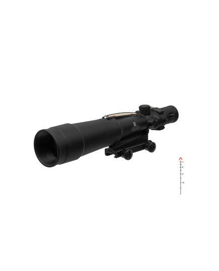 Прицельная сетка ACOG 5.5x50 Red Chevron BAC .308 включает шеврон с плоской вершиной. Ширина шеврона у основания составляет 5,53 МОА, что составляет 0,48 м на расстоянии 300 м. Это позволяет оценить дальность до силуэтных целей.