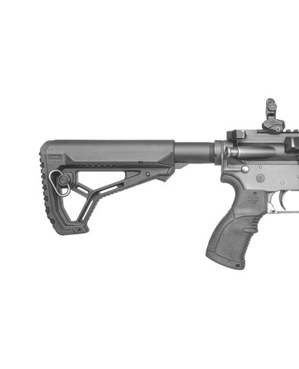 Новейший приклад от компании FAB-DEFENSE - удобен в использовании, специальный адаптер позволяет установить его на трубки Mil-Spec и Commercial. Плавный изгиб щеки делает стрельбу очень комфортной.