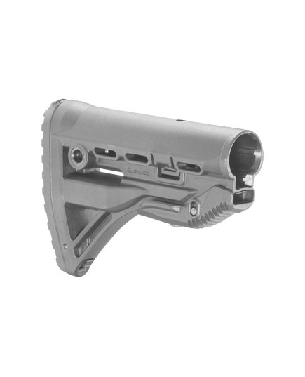 Приклад GLSHOK от компании FAB-DEFENSE - удобен в использовании, разработан специально для карабинов AR15/M16. Плавный изгиб щеки делает стрельбу очень комфортной. (Труба приклада не входит в комплект, её можно приобрести отдельно или использовать штатную трубу приклада. Подходит для труб MIL-SPEC and Commercial). Благодаря использованию запатентованной пружины импульс отдачи ощущается значительно меньше, особенно при темповой стрельбе. При выстреле энергия сначала действует на пружину, расположенную в прикладе, сжимая её, и только после этого предает энергию в плечо стрелка. Это позволяет значительно лучше контролировать подброс оружия и упрощает исполнение быстрой серии выстрелов.