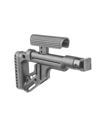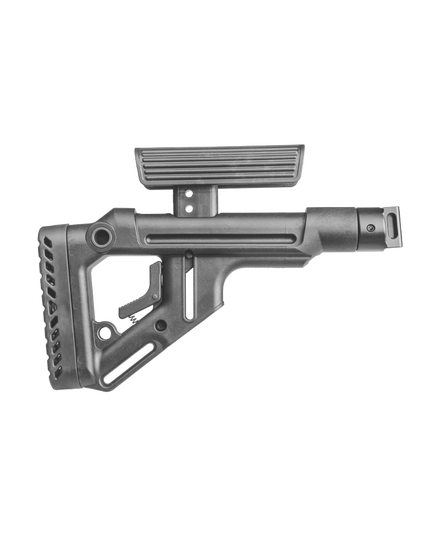Приклад с щекой для карабина.Плавный изгиб щеки делает стрельбу очень комфортной, высоту щеки можно регулировать, это необходимо для комфортной стрельбы с любым оптическим или коллиматорным прицелом.Лёгкий вес, продуманный дизайн без выступающих частей, пистолетная рукоятка с вместительным контейнером для хранения элементов питания, делают этот приклад одним из лучших. Есть два слота для крепления QD антабки. Приклад складывается на левую сторону, это позволяет сэкономить место при хранении и транспортировке.Особенности:Надёжная и функциональная конструкция.Эргономичный дизайн не позволит прикладу цепляться за снаряжение, даже в сложенном состоянии.Прорезиненный затыльник для компенсации отдачи и исключения соскальзывания.Приклад оборудован герметичным отсеком для хранения батареек.Эргономичная пистолетная рукоятка, с нескользящей текстурированной поверхностью и отсеком для хранения батареек. Угол наклона рукоятки подобран для оптимального противодействия отдаче, и максимального удобства управления ружьём