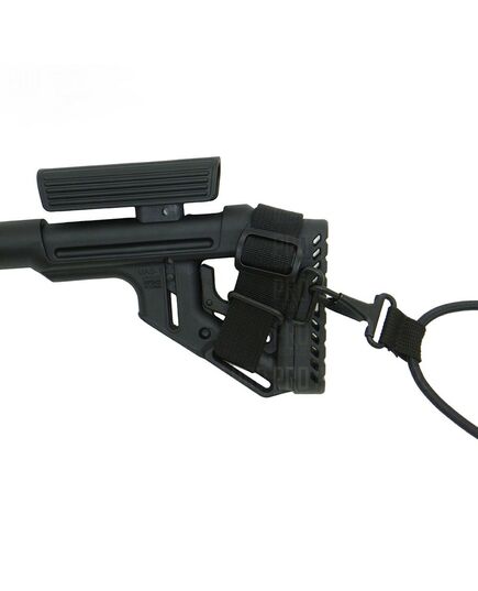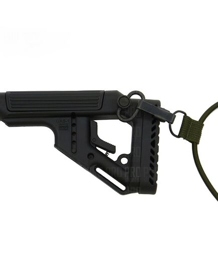 Легка вага, продуманий дизайн без виступаючих частин, пістолетна рукоятка з містким контейнером для зберігання елементів живлення роблять цей приклад одним з найкращих. Є два слота для кріплення QD антабки. Приклад складається на ліву сторону, що дозволяє заощадити місце при зберіганні і транспортуванні.