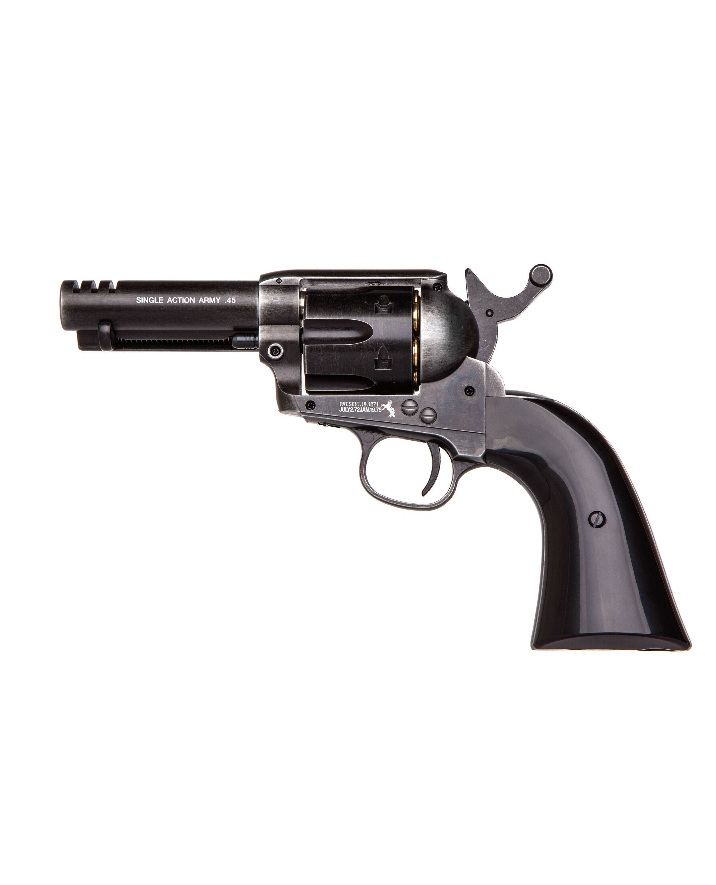 Компанія Umarex займається випуском пневматичних пістолетів і револьверів відомих марок. На українському ринку ця компанія вже давно і встигла сподобатися багатьом українським покупцям. Зараз ми хочемо запропонувати вашій увазі копію легендарного Colt Single Action Army 45. Пневматичний револьвер Colt SAA .45-3.5" Custom Shop Edition стріляє за допомогою балонів CO2 сталевими кульками BB. Револьвер має металевий корпус, що робить його більш реалістичним. Пробивається балон спеціальним ключем-шестигранником, який вставлений в рукоятку револьвера. Це зроблено для того, щоб не було видно пробивного гвинта. Компанія Umarex зробила копію цього револьвера до найдрібніших дрібниць, аж до імітації перезаряджання патронів у камори барабана. У комплекті йде 6 фальшпатронів, в які і вставляються сталеві кульки BB. Стріляє він тільки за допомогою попереднього взводу курка.