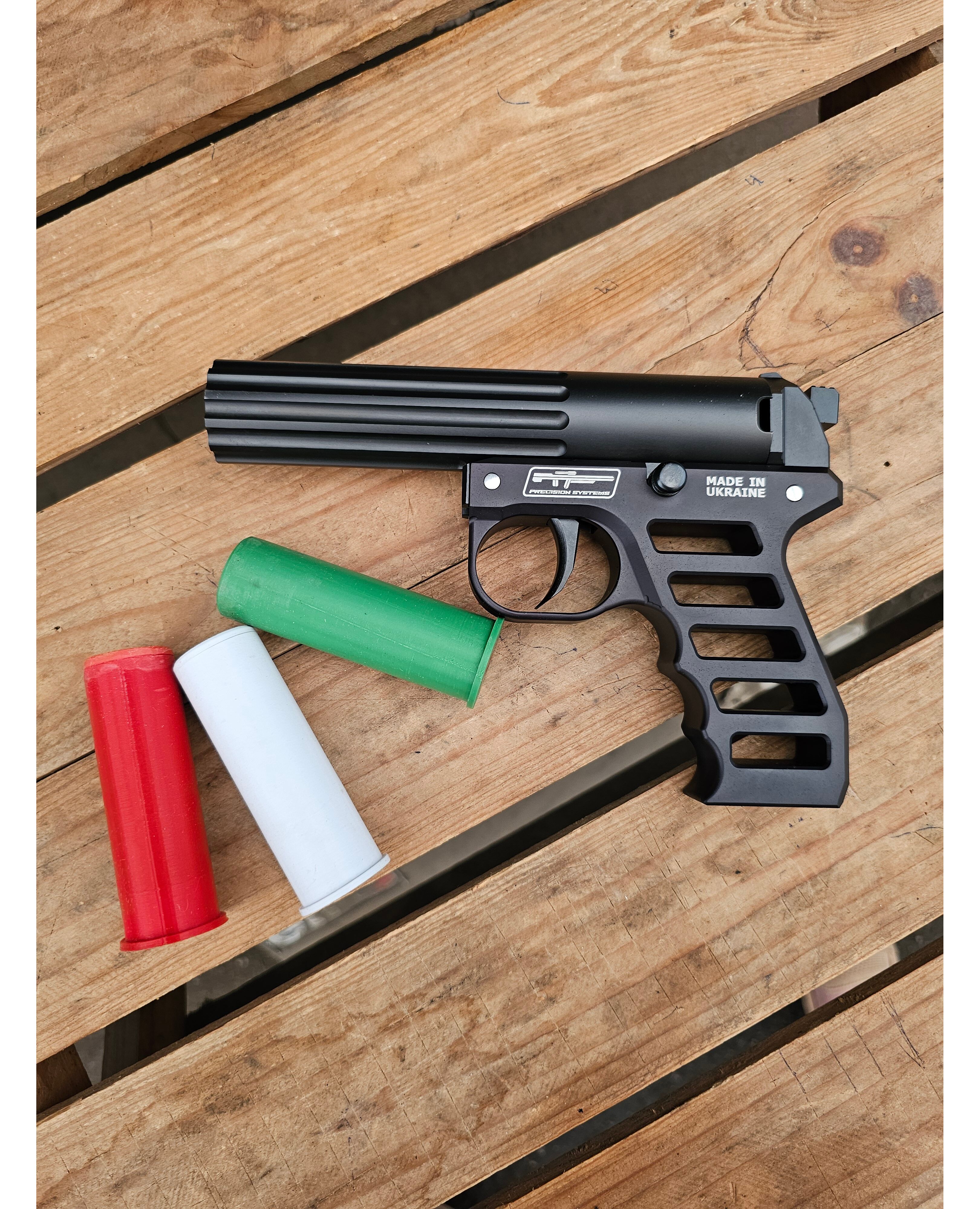 Сигнальный пистолет (Ракетница) F-GUN кал. 26,5 мм — запатентированное гладкоствольное ручное устройство для стрельбы сигнальными и осветительными патронами калибра 26,5 мм разного цвета горения, произведенное ПП «Точные Системы» (PRECISION SYSTEMS TM).