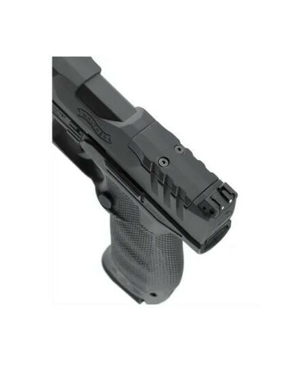 Пневматическая версия пистолета Walther PDP Compact от немецкого производителя пневматического и страйкбольного оружия Umarex. Оригинальная модель PDP (Performance Duty Pistol) была представлена компанией Carl Walther в 2021 году. Этот пистолет ориентирован на рынок полицейского оружия и на гражданский рынок. Он является развитием предыдущего аналогичного пистолета компании, Walther PPQ M2. Модификация Compact - это компактная версия пистолета линейки PDP с длиной ствола 4" (10,16 см), что обеспечивает скрытое ношение. По внешним и массо-габаритным характеристикам пневматическая реплика от Umarex полностью повторяет оригинальную модель. Рамка пистолета изготовлена из прочных полимерных материалов, а ствол и кожух-затвор - из стали. На спусковом крючке имеется автоматический предохранитель от случайных выстрелов. В качестве прицельных приспособлений применены механические мушка и регулируемый целик. Подобно оригиналу, данная реплика оснащена интерфейсом OR (Optics Ready) - съемной планкой в верхней части кожуха-затвора, благодаря которой обеспечивается возможность установки коллиматорных прицелов для пневматического оружия Vortex, Leupold, C-More и Trijicon (планки в комплект не входят). Для установки дополнительных тактических аксессуаров, таких как подствольные фонари и лазерные целеуказатели, предусмотрен интерфейс Пикатинни. Наличие специальных насечек на кожухе-затворе способствует удобству взведения. Благодаря расширенной спусковой скобе обеспечивается возможность ведения стрельбы в тактических перчатках. На рукоятке имеется противоскользящая насечка для надежного хвата даже мокрой рукой. Пневматический пистолет PDP Compact от Umarex полностью лицензирован компанией Carl Walther, а значит он содержит аутентичные маркировки на корпусе.