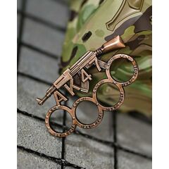 Характеристики: Дизайн:  Constantine Материал: цельная сталь Отделка: Antiqued Bronze (антикварная бронза) Общая длина: 4,85" (≈12,3 см) Ширина: 2,75" (≈7 см) Толщина: 0,45" (≈11,5 мм) Вес: 7,8 oz (≈221 г) Размер отверстий под пальцы: овальные, ≈1" Размеры колец...