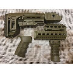 Комплект для апгрейда оружия от официального производителя аксессуаров для стрелкового оружия, фирмы DLG Tactical. Набор состоит из следующих компонентов: цевье; накладка на газовую трубку; прорезиненная пистолетная рукоять; ручка переноски огня и антабка; складной в левую сторону телескопический...