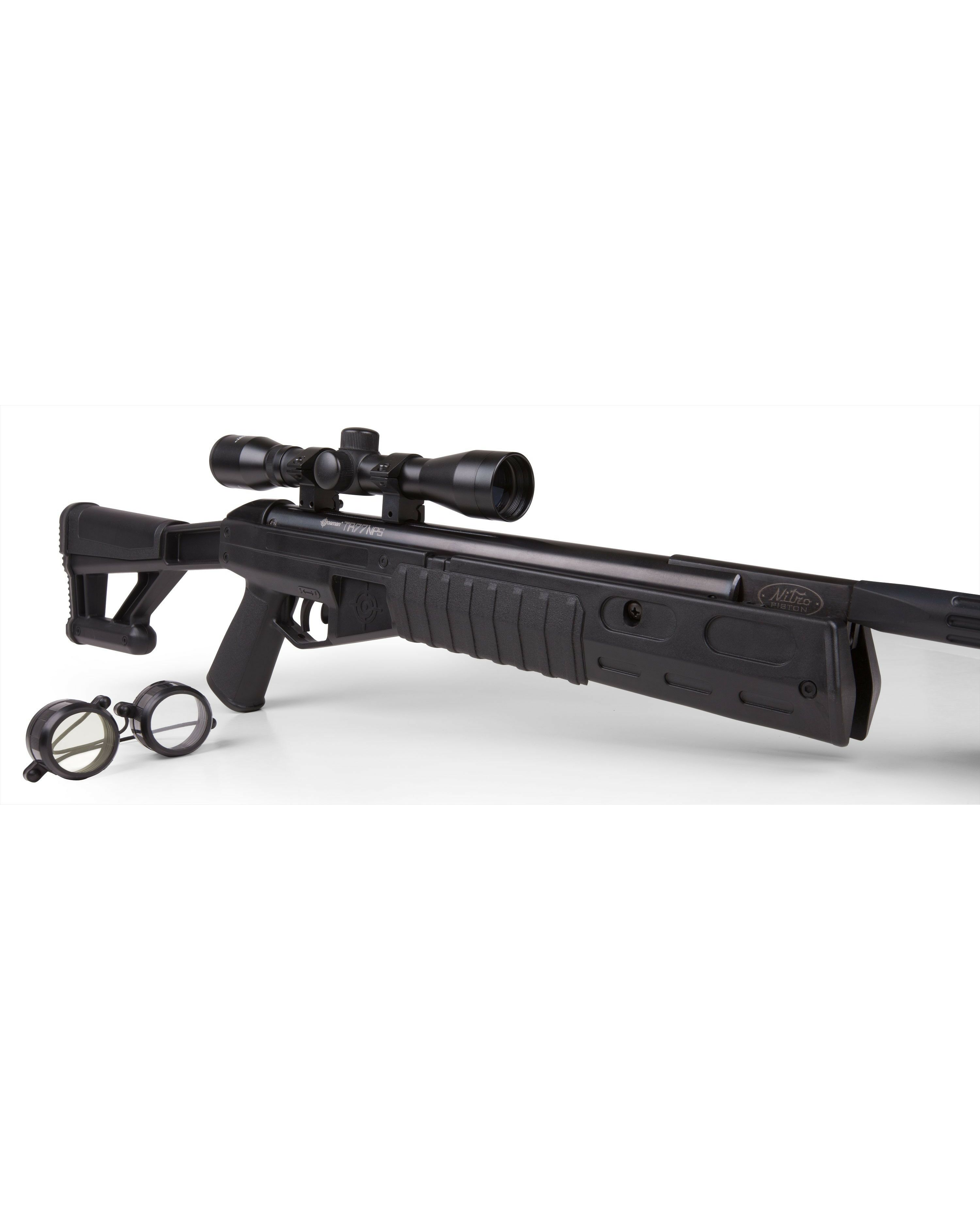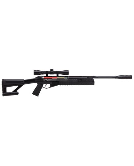 Crosman - практично синонім пневматичної зброї в США. Фірма почала виробляти пневматичні гвинтівки ще в далекому 1924 рік за роком вдосконалюю технології. На сьогодні пневматичні гвинтівки і пістолети Crosman вважаються одними з кращих в світі, новаторами галузі, задаючи стандарти якості і технологічності у всьому світі. Пневматичні пістолети Crosman невибагливі в обслуговуванні, надійні і точні, вони стануть прекрасним спортивним аксесуаром для активного відпочинку на природі. А пневматичні гвинтівки Crosman, завдяки високій точності і, в поєднанні з величезним вибором аксесуарів, чудово підійдуть для професійних тренувань або полювання на дрібну дичину. Гвинтівка Crosman TR77 NPS - пневматична гвинтівка, що має формфактор штурмової гвинтівки. Від аналогічної по характеристиках моделі TR77, гвинтівка відрізняється укороченим стволом. Гвинтівка однозарядна і зводиться переломом стовбура. У конструкції використовується газова пружина, що додає їй переваги перед звичайними пружинно-поршневими моделями. Перелом стовбура відбувається більш м'яко. Газову пружину можна довго тримати на взводі без погіршення параметрів. У гвинтівки з газовою пружиною набагато м'якше віддача і більш приємний звук пострілу. Завдяки відсутності вібрації, довго служить оптичний приціл, яким оснащена гвинтівка. Ложа гвинтівки виготовляється з міцного пластику. Вага гвинтівки невеликий - 2, 6 кг, тому її легко носити, і можна швидко скинути для прицілювання. Оскільки гвинтівка не містить відкритих прицільних пристосувань, модель комплектується оптичним прицілом CenterPoint 4х32mm. Початкова швидкість кулі гвинтівки 305 м / сек. Прицільну стрільбу можна вести на дальності до 70 метрів. Гвинтівка має регульований спусковий механізм та неавтоматичних важільний запобіжник.