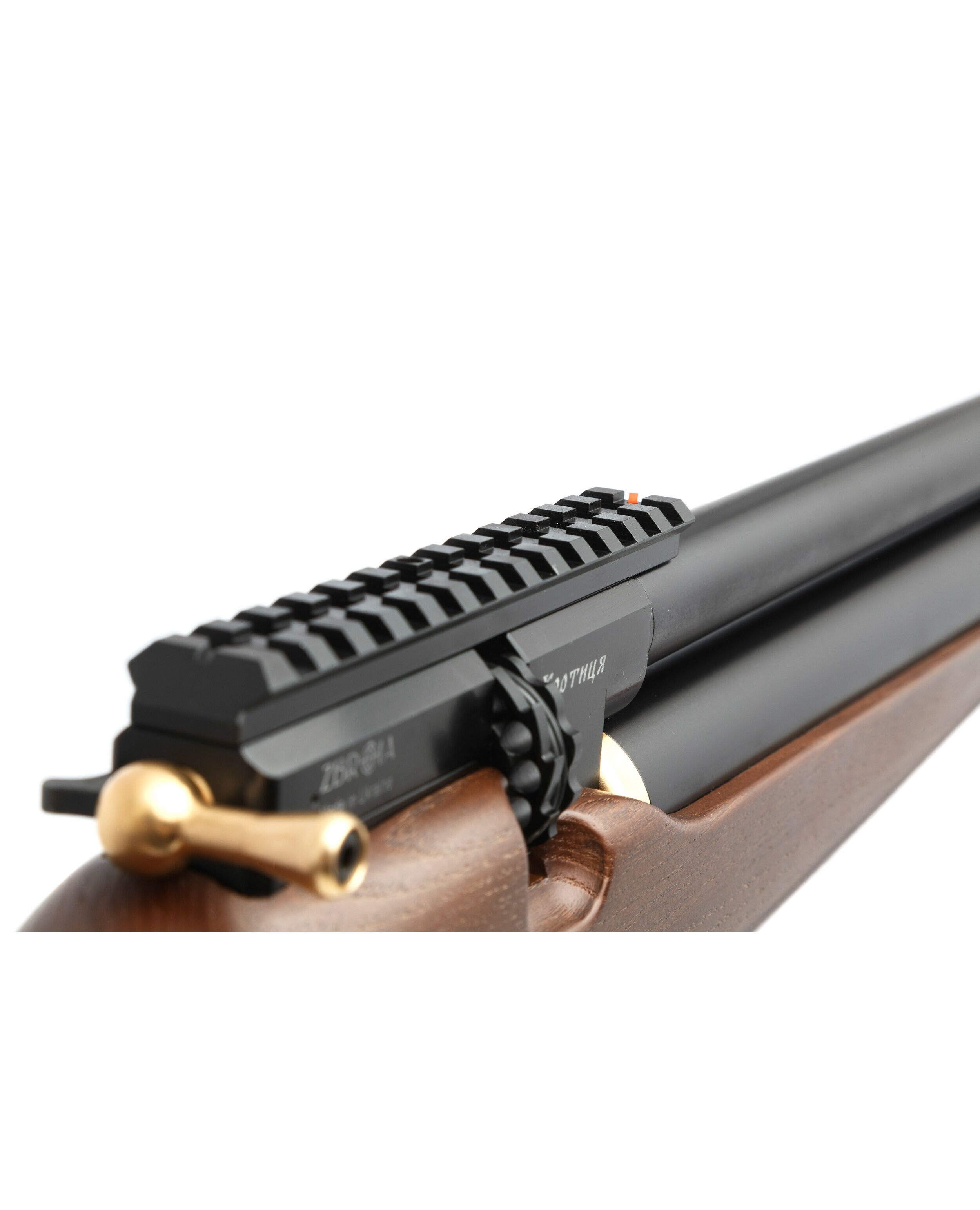 12–ти зарядный магазин PCP открытый и легкосъемный, рассчитан для применения длинных (тяжёлых) пуль. Винтовка оборудована планкой Piсatinny для установки оптического прицела.
