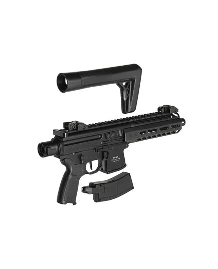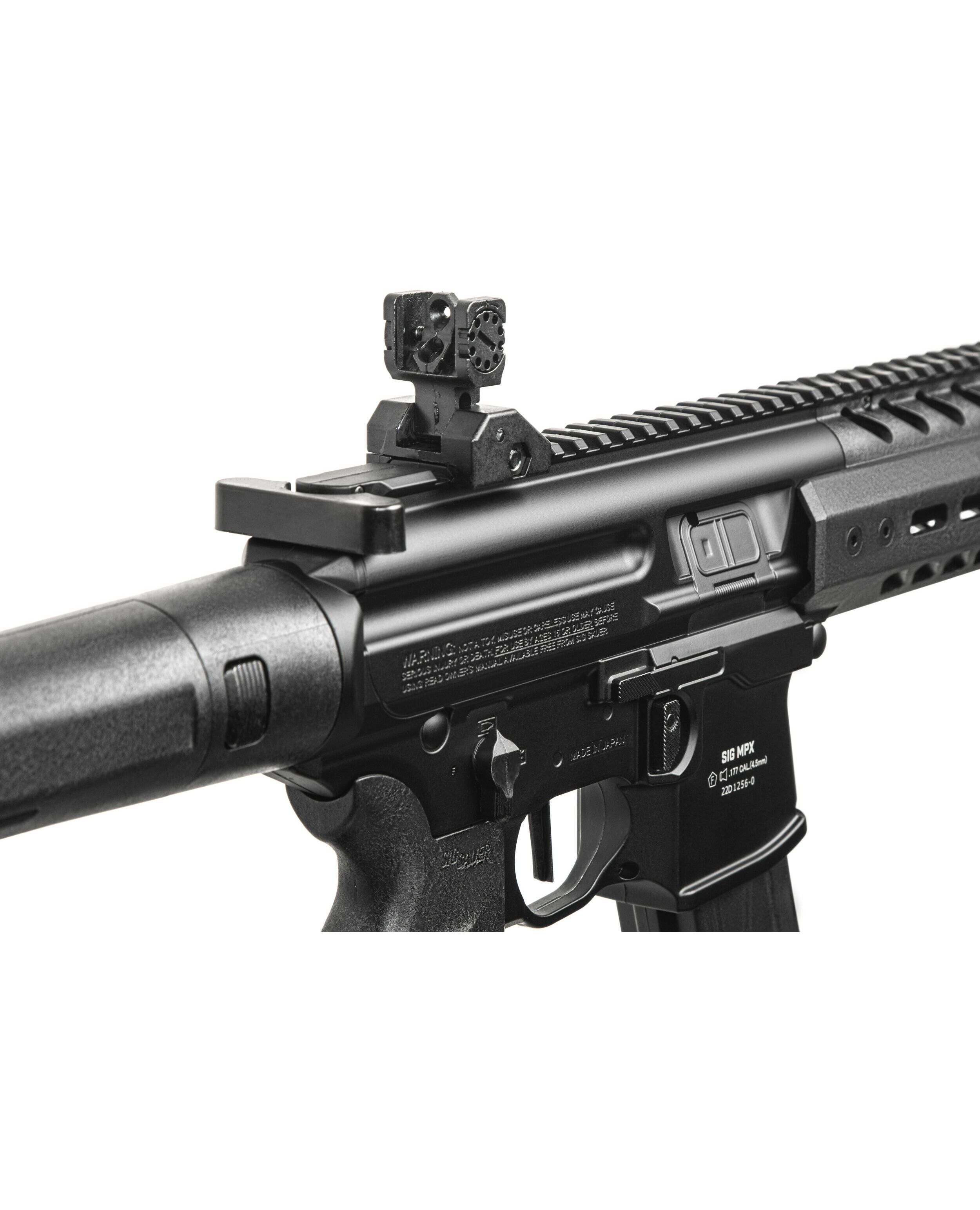 Пневматическая винтовка SIG MCX GEN II .177 имеет цевье системы M-LOK, плоский спусковой крючок и низкопрофильный затвор. Быстросъемный приклад вмещает 88-граммовые или 90-граммовые баллоны CO2. Прицелы пневматической винтовки можно откинуть, есть регулировка по горизонтали и высоте. Начальная скорость пули - 137 м/с, длина винтовки – 654 мм, вес – 2,8 кг.