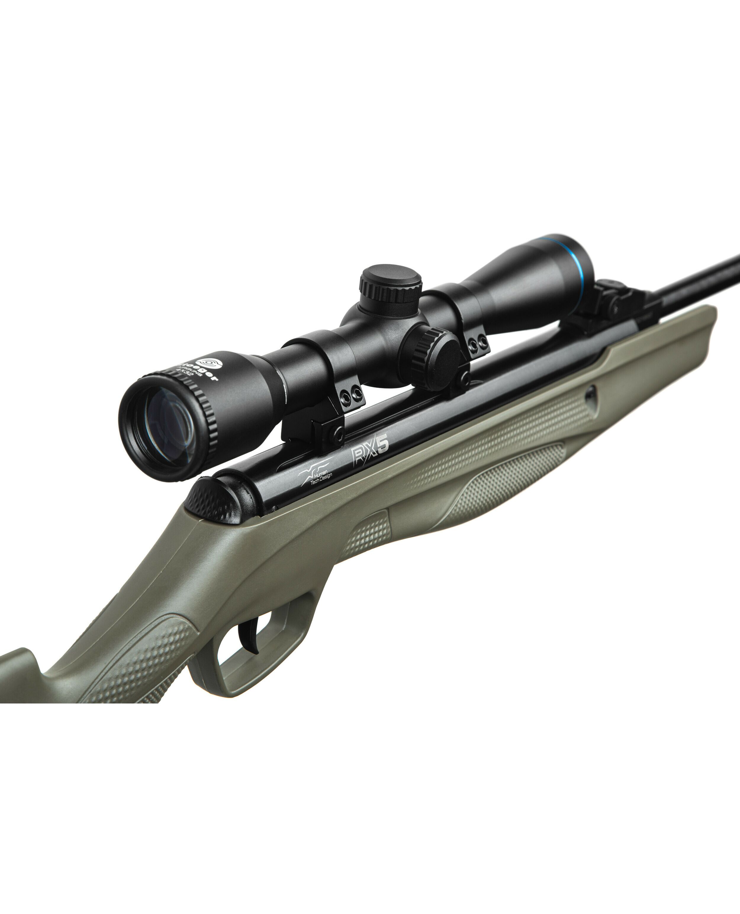 Пневматична гвинтівка Stoeger RX5 стала першим представником нової лінійки RX, що втілила в собі нову філософію HUMAN TECH DESIGN, основою якої стала функціональна ергономіка і дослідницький досвід. Нова система PRO ADAPTIVE CHECKERING має особливе рифлення, яке розташовується в критично важливих частинах ложа гвинтівки, дозволяючи інтуїтивно, на дотик, знайти правильне положення рук, для кращого і надійного хвата в самих різних положеннях. Гвинтівка оснащена автоматичним запобіжником який включається при кожному зведенні гвинтівки, оберігаючи від випадкового пострілу. Також в комплектацію Combo входить оптичний приціл постійної кратності 4х32.