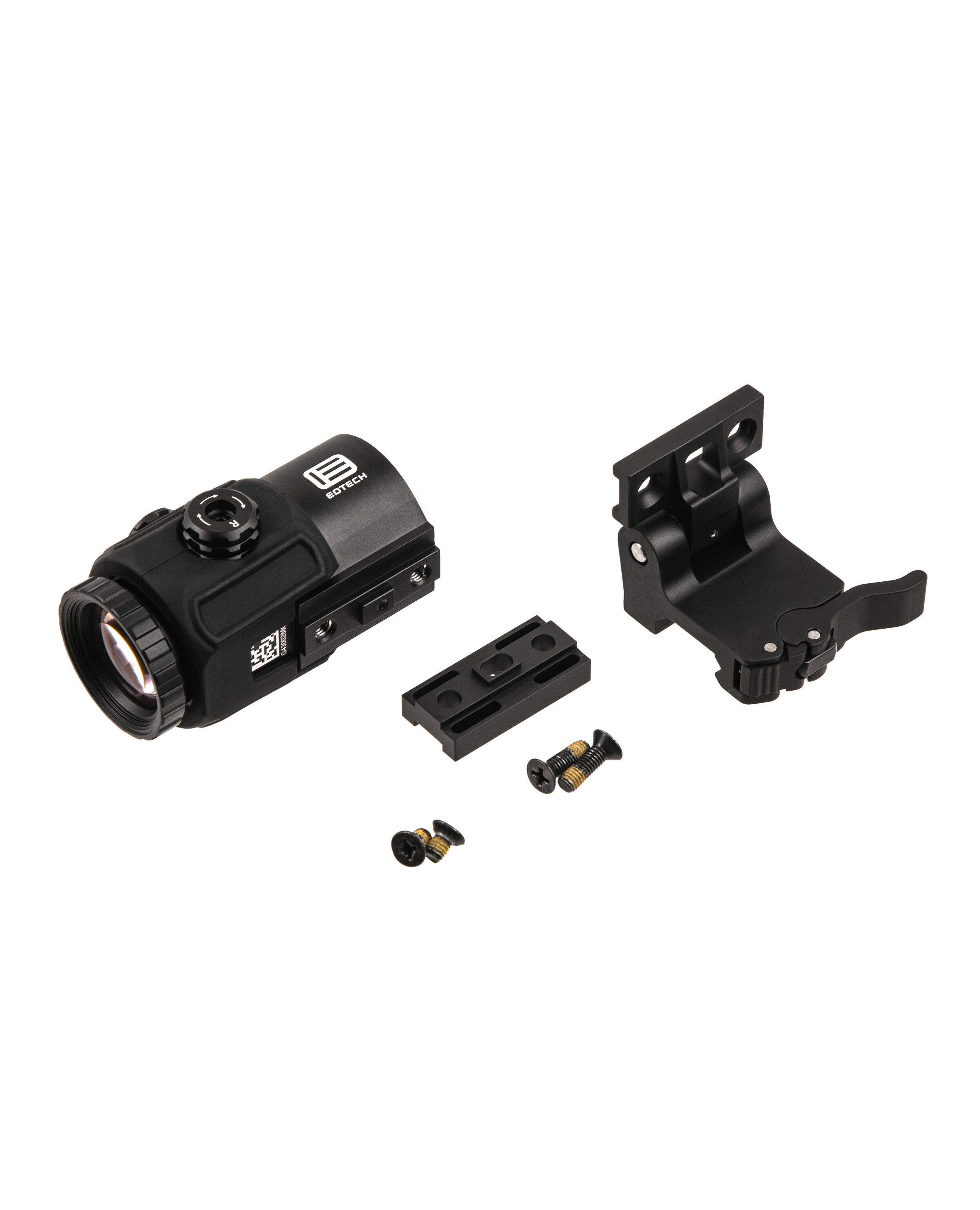 Увеличитель G43 — это уменьшенная версия проверенного в боевых условиях увеличителя G33, что делает его одним из самых компактных и легких увеличителей на рынке. Откидное крепление обеспечивает быстрый переход от 3X к 1X. G43 поставляется с проставкой 7 мм (райзер) для правильной совместимости с любой моделью голографических прицелов EOTech. Увеличитель имеет быстросъёмное крепление для быстрой устнановки на планку и быстрого снятия.